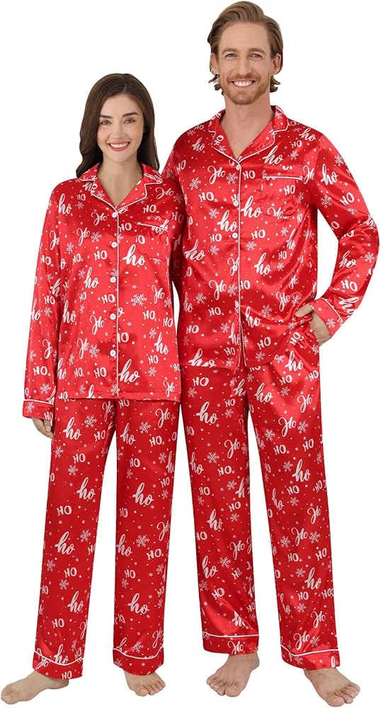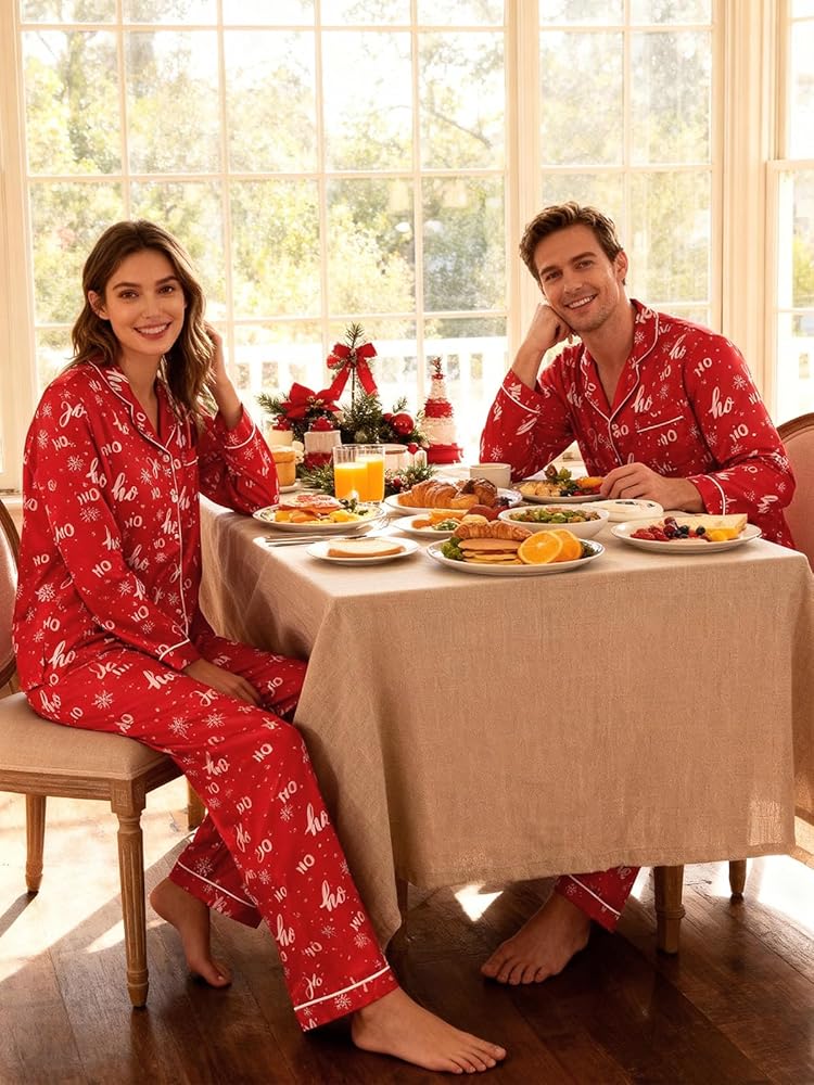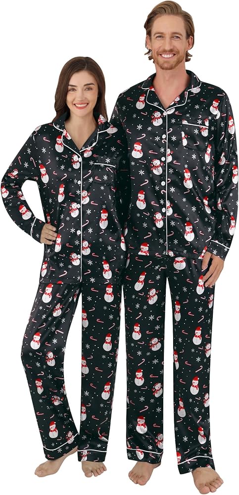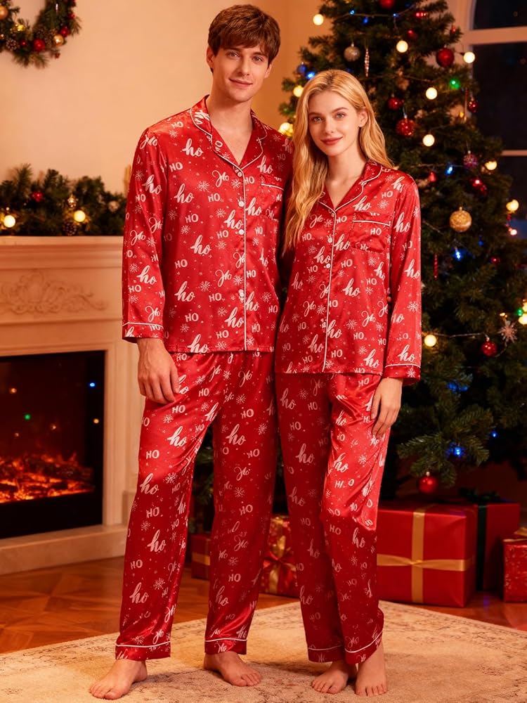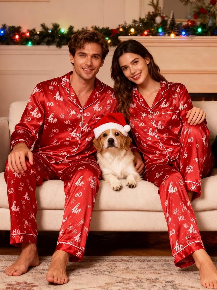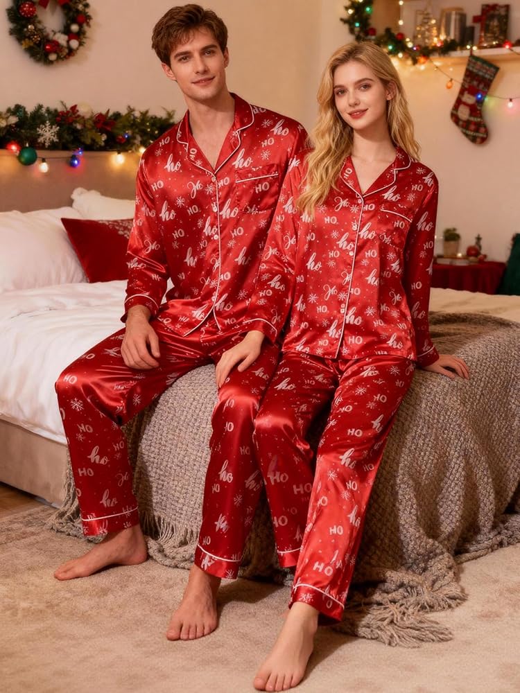 • 【مجموعة PJS من الساتان】إن بيجامات عيد الميلاد للأزواج مصنوعة من 95% بوليستر و5% ألياف لدنة، مما يوفر ملمسًا ناعمًا ومساميًا وصديقًا للبشرة. البيجامات المتطابقة للأزواج تبقيك أنت وشريكك مرتاحين خلال موسم العطلات.