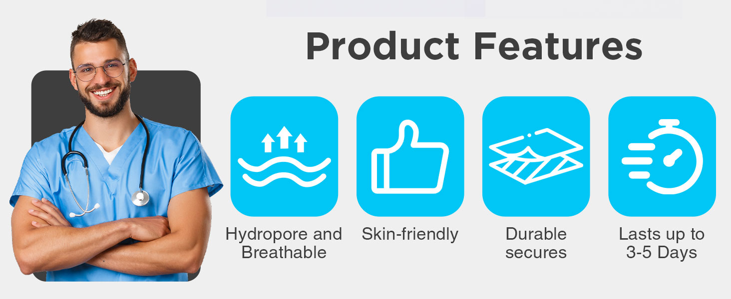 • مسامي ومقاوم للماء: يسمح المسام للجلد بالتنفس، بينما يحجب الماء والبكتيريا، ويحمي الجرح من الهجوم البكتيري.