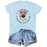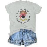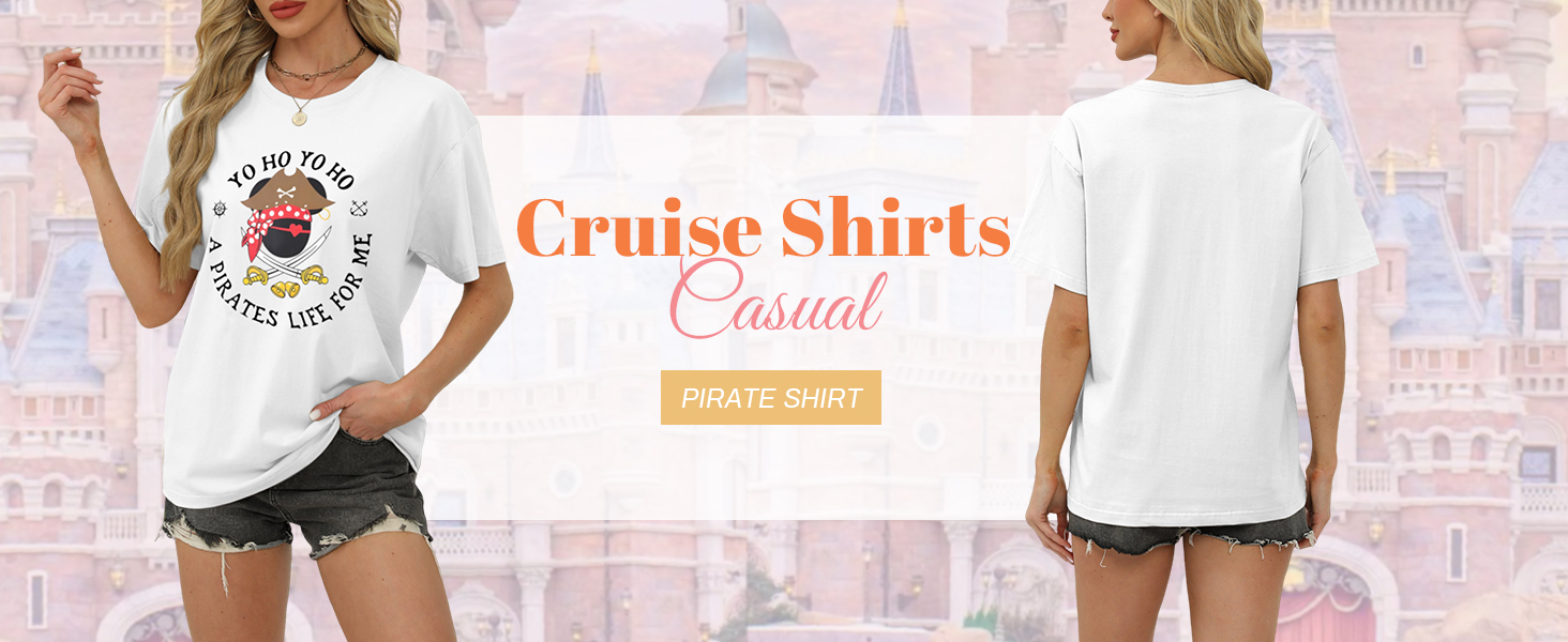 التصميم: قمصان كروز، قميص القراصنة للسيدات مطبوع عليه الكلمات Yo Ho Yo Ho وA Pirates Life for Me، مع رحلة بحرية لطيفة في المنتصف. تُظهر التصميمات المثيرة للاهتمام على تي شيرت القرصان روح المغامرة لالتقاط البحر المفتوح