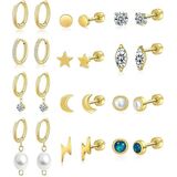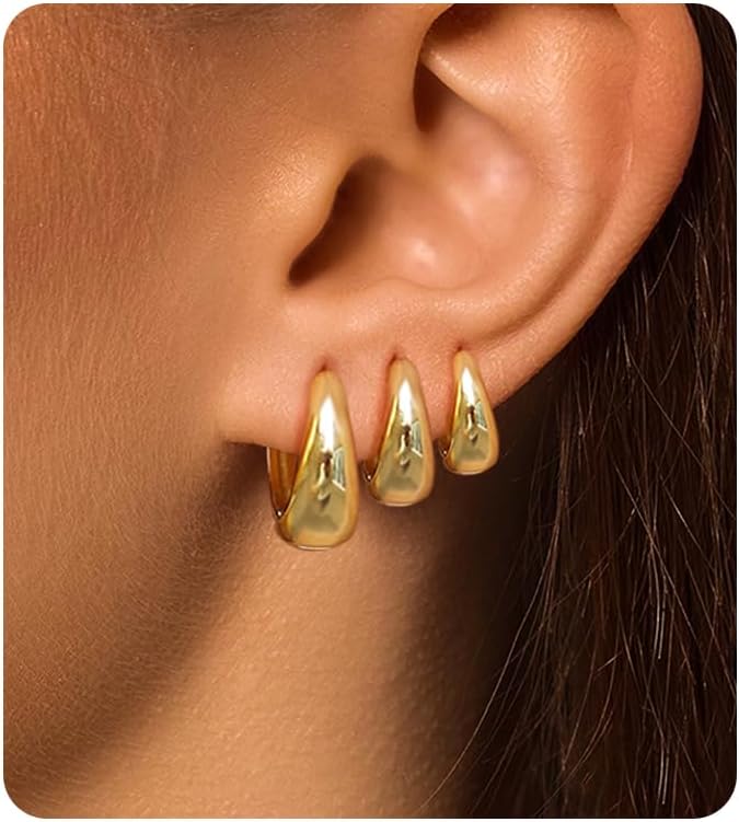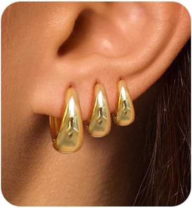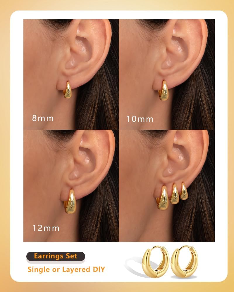 مجموعة أقراط هوجي هوب صغيرة من الفولاذ الجراحي للنساء، أقراط خفيفة الوزن مطلية بالذهب عيار 14 قيراط لا تسبب الحساسية، مقاومة للماء وغير قابلة للتشويه من أجل ثقب متعدد