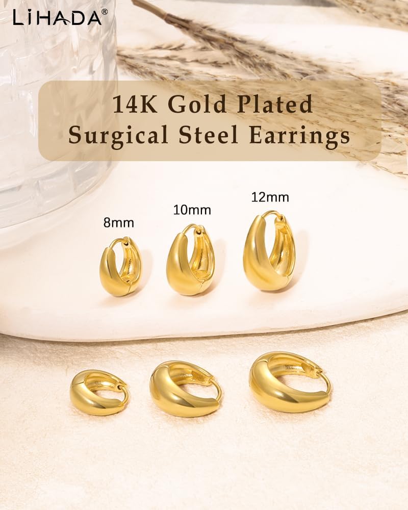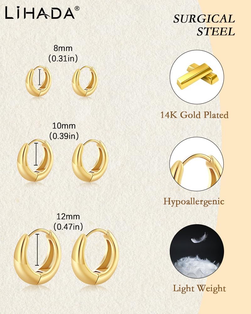 • 【Surgical Steel Earrings】Our LIHADA surgical steel small huggie hoop earrings.Professional polishing and plating processes are used,designed for durability and skin friendliness.Waterproof and oxidation-resistant with corrosion-resistant properties. Contains no nickel or lead, making it extremely hypoallergenic. Safe and reliable for extended wear