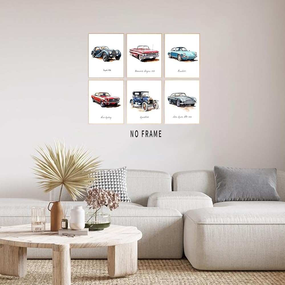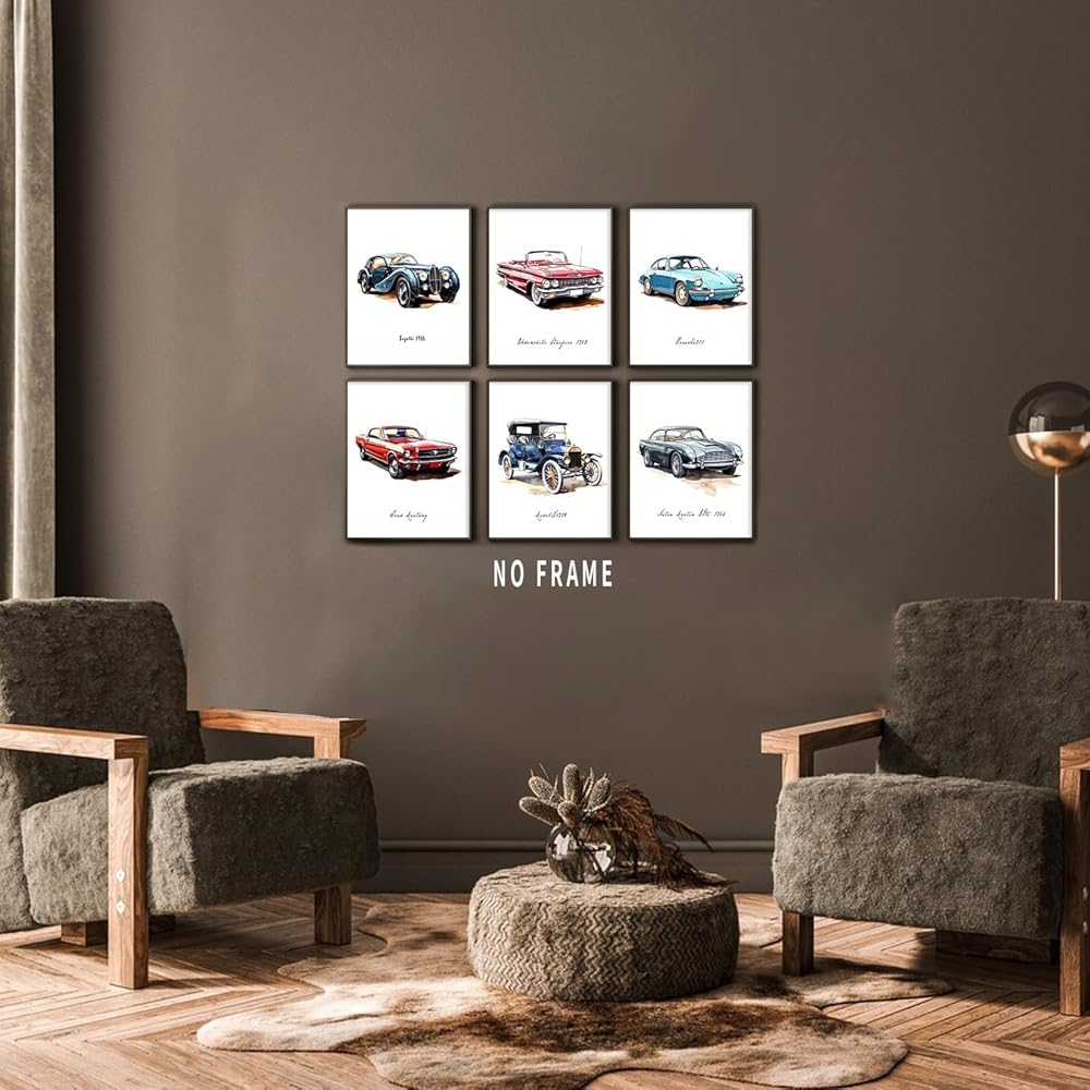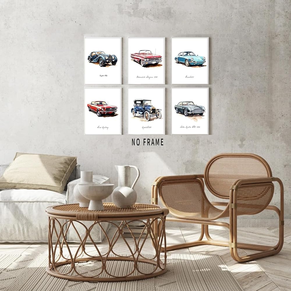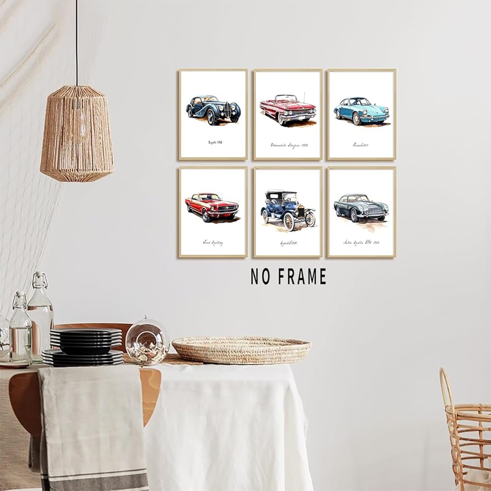 【NO FRAMES INCLUDED】: Prepare your favorite frame, Our Watercolor Classic Car Wall Art Prints come ready to frame using 8x10 inch frames found right here on Amazon or at your local big box store, allowing you to easily match the frames to your decor. It takes only a few minutes to decorate your room perfectly.