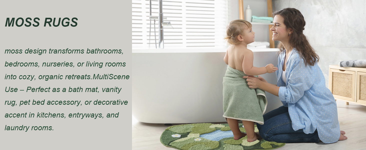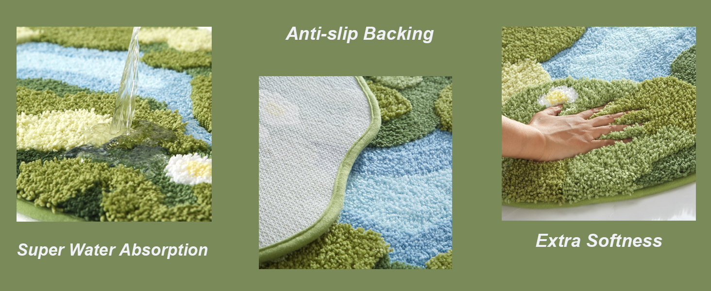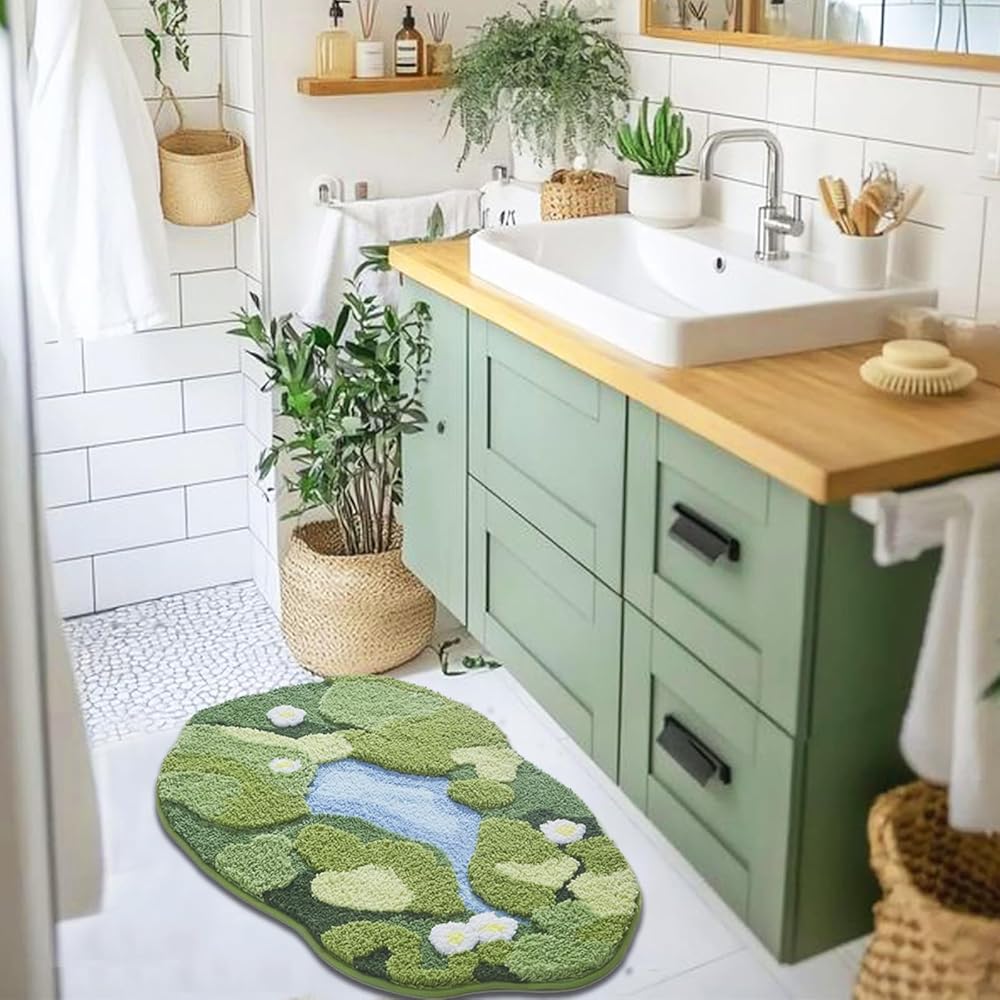 【ديكور متعدد الاستخدامات لكل مساحة】نمط مستوحى من الطبيعة - تصميم الطحلب يحول الحمامات أو غرف النوم أو غرف الأطفال أو غرف المعيشة إلى ملاذات عضوية مريحة. استخدام متعدد المشاهد - مثالي كسجادة حمام، أو سجادة للزينة، أو إكسسوار لسرير الحيوانات الأليفة، أو لمسة زخرفية في المطابخ والمداخل وغرف الغسيل.
