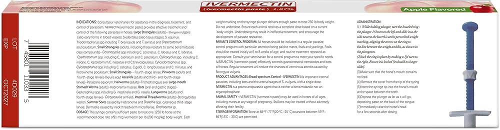 - Single-Dose Oral Paste: Contains 1.87% ivermectin in an easy-to-use formulation designed for horses.