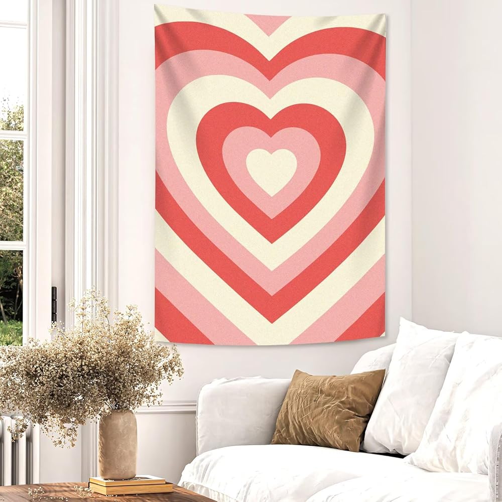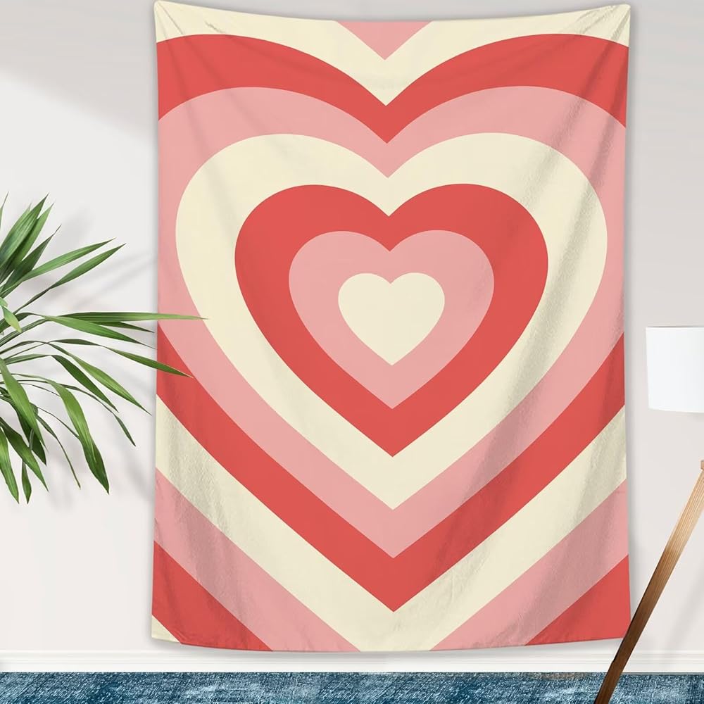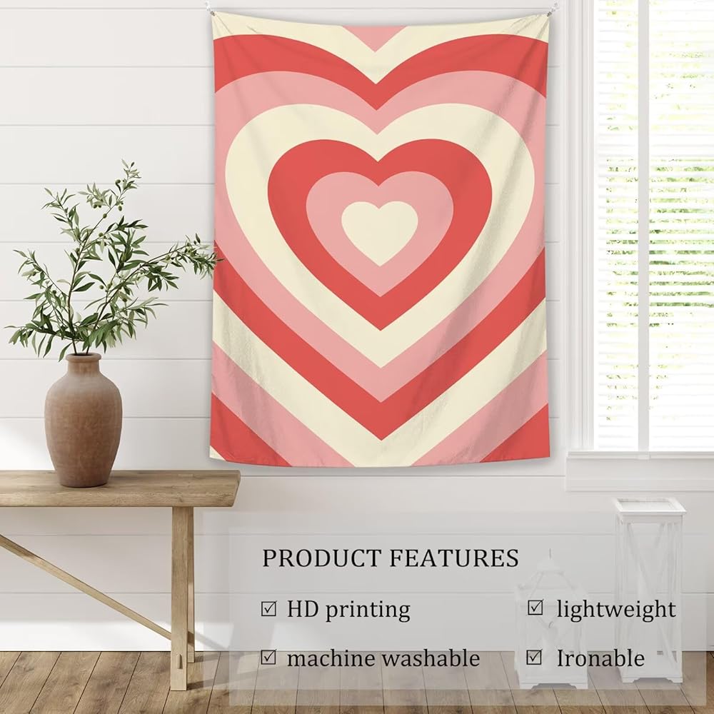 Unique design: The design of printed tapestry is a cute style painting with heart shape, making it an excellent decoration for the bedroom and girl's room. Very nice pink color to help match the aesthetic your room/office may have
