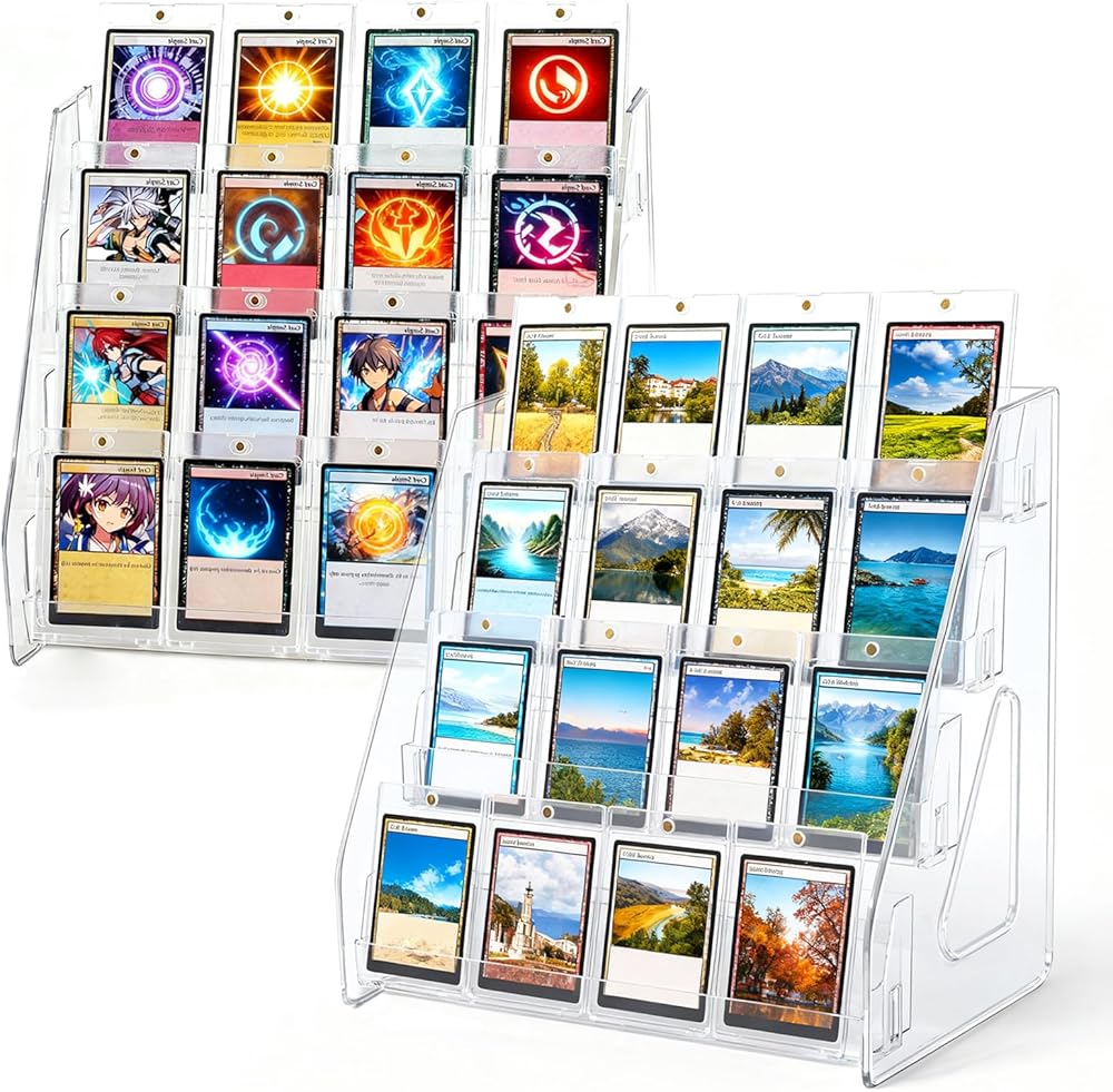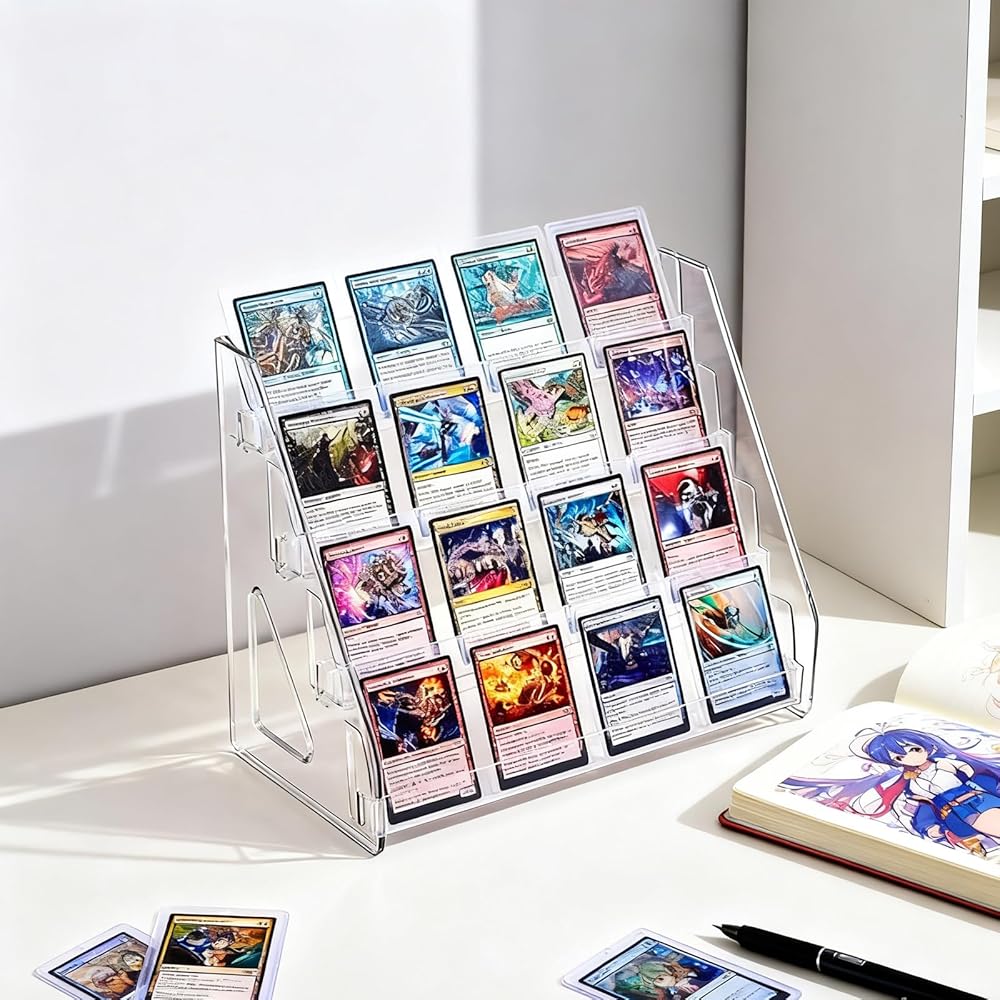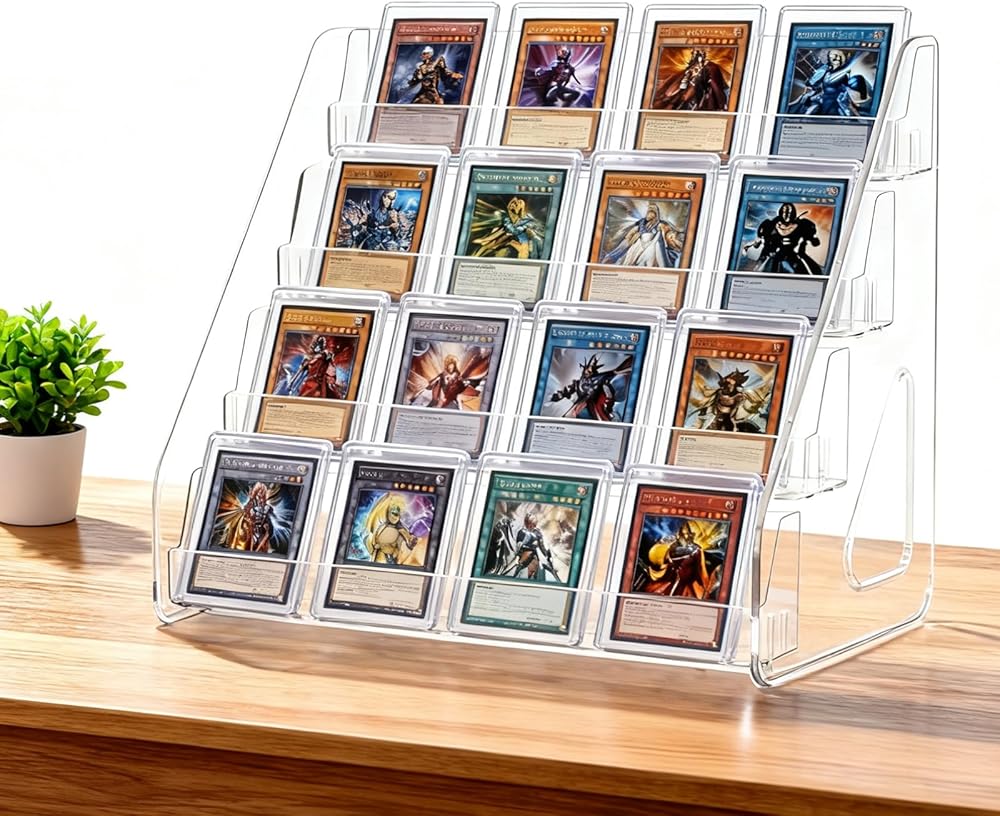 【مصمم لجميع أنواع البطاقات】حامل العرض الأكريليك الشفاف هذا المكون من 4 طبقات (الحجم الإجمالي: 12.4 × 6.7 × 10.6 بوصة؛ كل طبقة: 12 × 1.5 × 2.4 بوصة) مثالي لألواح PSA وBGS وSGC، والحوامل المغناطيسية، وأجهزة التحميل العلوي، والبطاقات الرياضية TCG. كما أنه يعمل أيضًا مع بطاقات المعايدة والبطاقات البريدية والملصقات والكتيبات والمقتنيات.