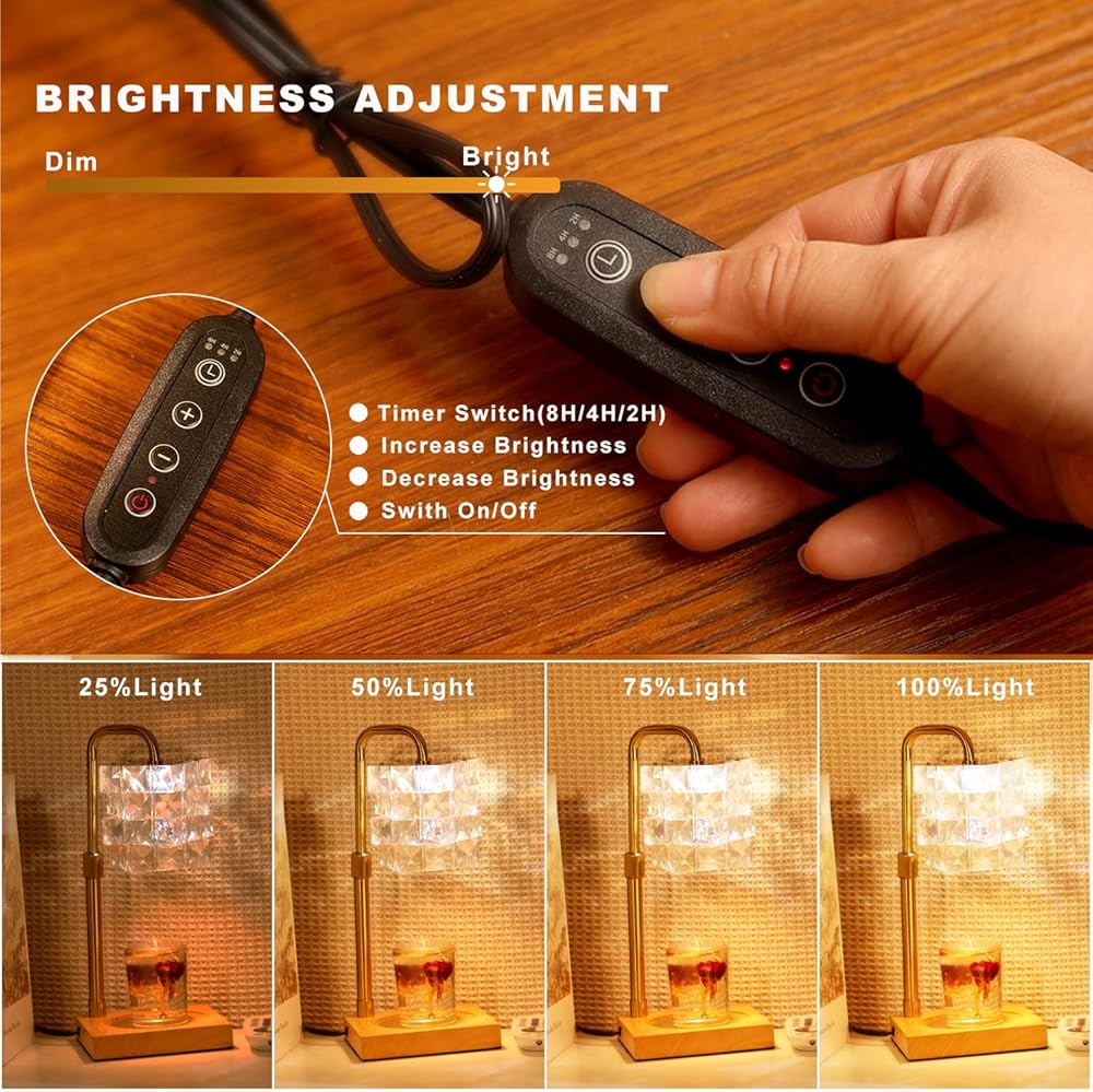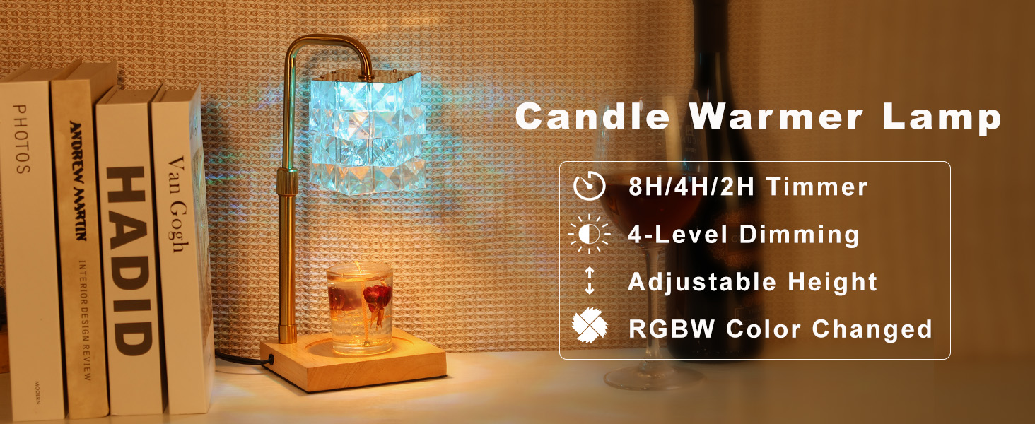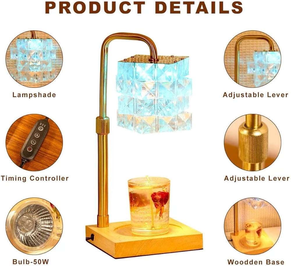 مصباح تسخين الشموع من ACALEPH، 4 ألوان متغيرة مع مؤقت وخافت، ارتفاع سخان الشمع الكهربائي قابل للتعديل، ضوء طاولة على شكل كريستال مزيف بدون لهب هدية مثالية للأمهات والنساء والرجال، ديكور غرفة النوم المنزلية