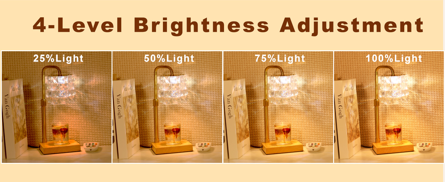 【وظيفة المؤقت والتعتيم】يتميز جهاز إزالة الشمع هذا بوظيفة المؤقت والتعتيم. يمكنك تحديد إعدادات المؤقت 2H/4H/8H، مما يزيل المخاوف بشأن نسيان أوقات التسخين. كما أنه يوفر 4 مستويات سطوع قابلة للتعديل، يمكن التحكم فيها عبر المفتاح أو جهاز التحكم عن بعد. مجهزة بمصباحين هالوجين بقدرة 50 وات GU10، الضوء الأكثر سطوعًا يجعل الشموع تذوب بشكل أسرع وتطلق عطرًا أقوى.