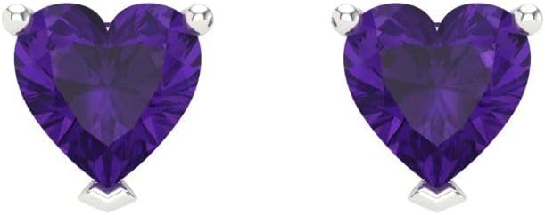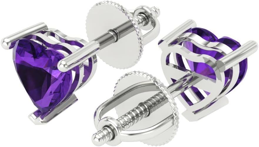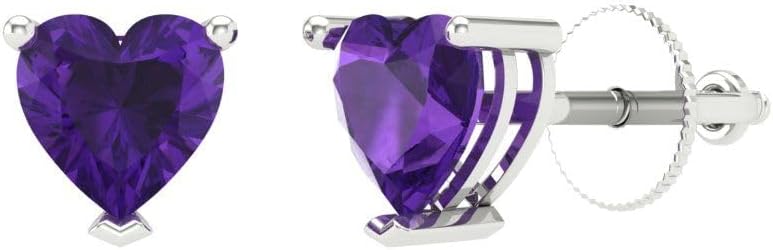 - 1 قيراط (الوزن الإجمالي قيراط) أقراط جمشت طبيعي مقطوعة على شكل قلب؛ حجر كريم 5 ملم على كل قرط