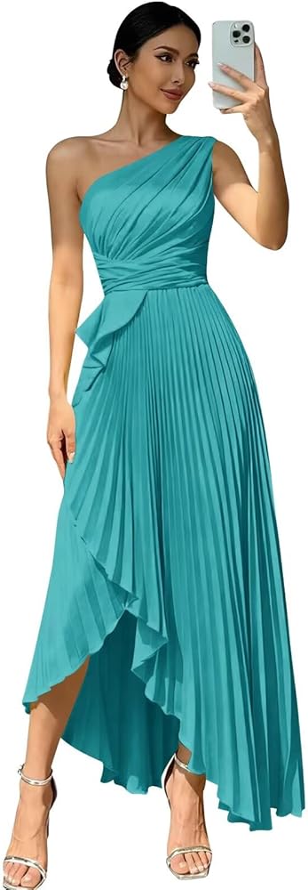 Features:The flowy bridesmaid dress features a pleated style as a highlight. One shoulder and lace up back enhance the fit of the dress while preserving its design. The pleated hem paired with just the right slit high low adds elegance and comfort. Whether at a wedding or any other occasion, this dress can make you have an unforgettable day.