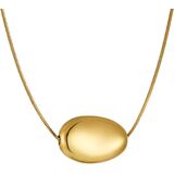 The chunky gold necklace features a classic combination of a pebble-shaped pendant and a serpentine chain, with fluid, natural lines that embody understated luxury through minimalist aesthetics. The pendant's rounded, full silhouette complements the chain's delicate texture, hugging the neckline's curves to reveal an air of elegance with every movement.
