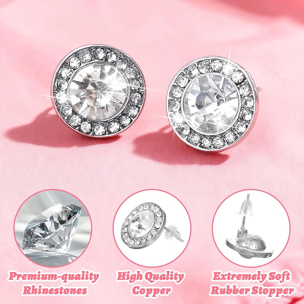Comfortable for All-Day Wear: Made from lightweight materials, our crystal stud earrings are perfect for long-lasting comfort. Each pair of studs earrings features a soft, non-slip rubber stopper to keep the earrings securely in place without causing discomfort. Whether you're wearing them for a dance competition or an all-day event, these crystal earrings for women ensure you stay comfortable and stylish.
