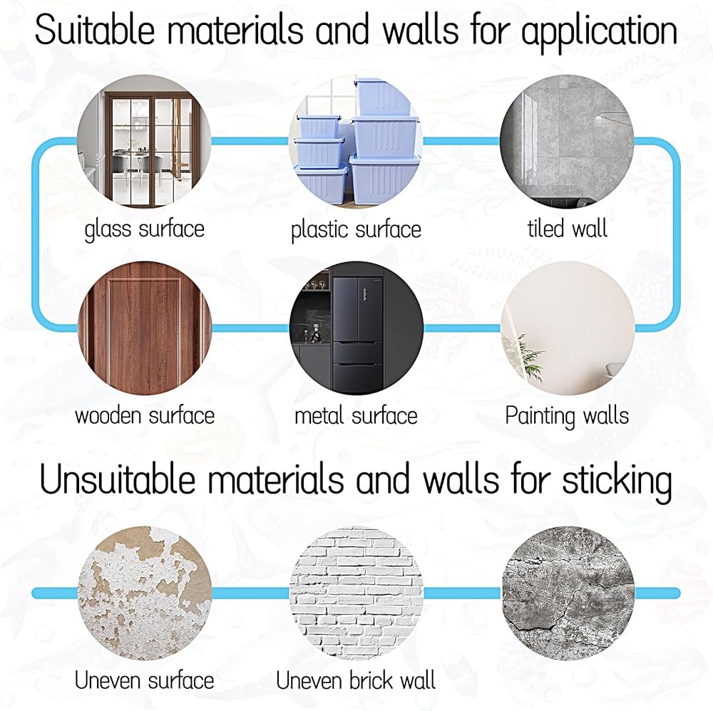 مواد عالية الجودة: ديكورات القرش لغرفة الأطفال مصنوعة من مادة الفينيل عالية الجودة مع استخدام طويل الأمد، ومن السهل تقشير ملصق الحائط من الجزء الخلفي من الفينيل ووضعه في أي مكان تريده على النافذة أو الباب أو الجدار المطلي أو أي سطح أملس ومسطح وجاف ولا يحتوي على غبار.