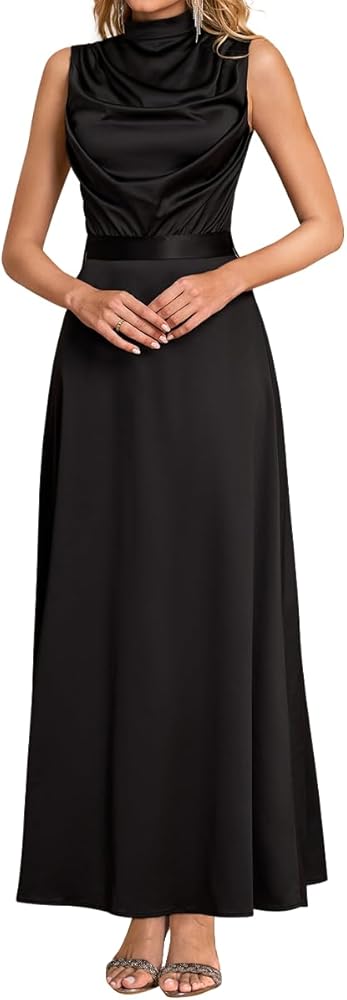 • السمات: فستان من الساتان مع حزام، فستان برقبة وهمية، فساتين ماكسي للنساء، فستان متأرجح عالي الخصر للنساء، سحاب خلفي، فستان بدون أكمام للنساء، فستان طويل فضفاض للنساء، فستان أنيق مع حزام