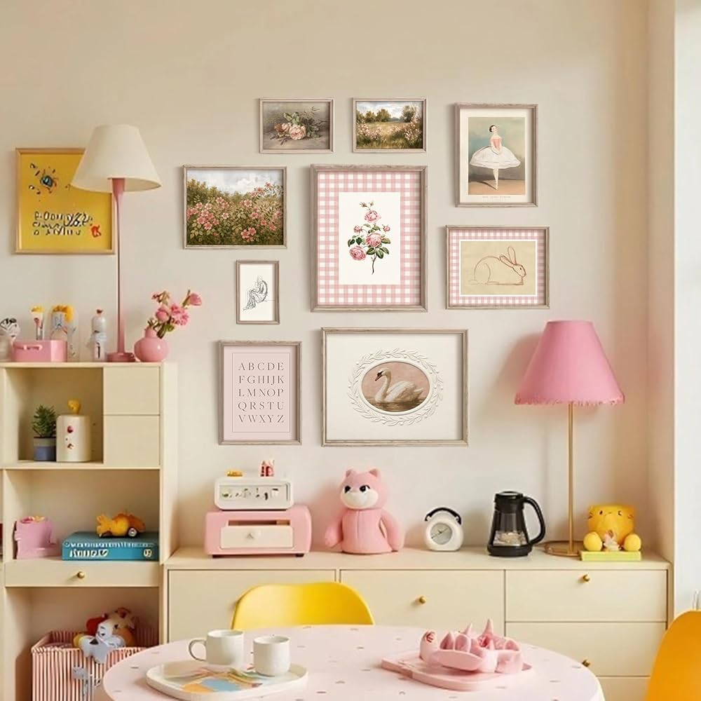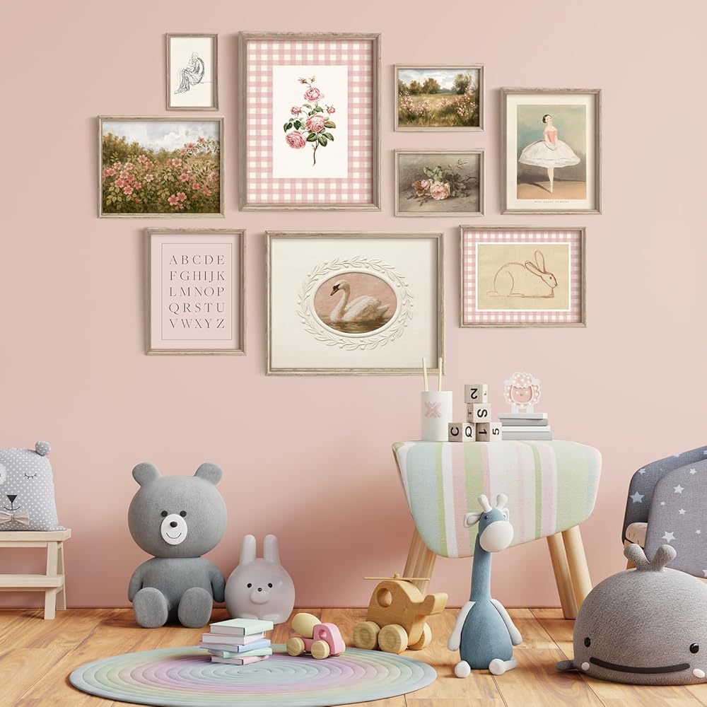Perfect for Kids Room Decor:The cute pink hue creates a calming, elegant atmosphere, ideal for nurseries and toddler bedrooms. Blending vintage charm with contemporary whimsy, its timeless appeal never fades. This understated vintage wall art set can grace nurseries, playrooms, or even serve as a delightful accent in the living room – effortlessly elevating any room!
