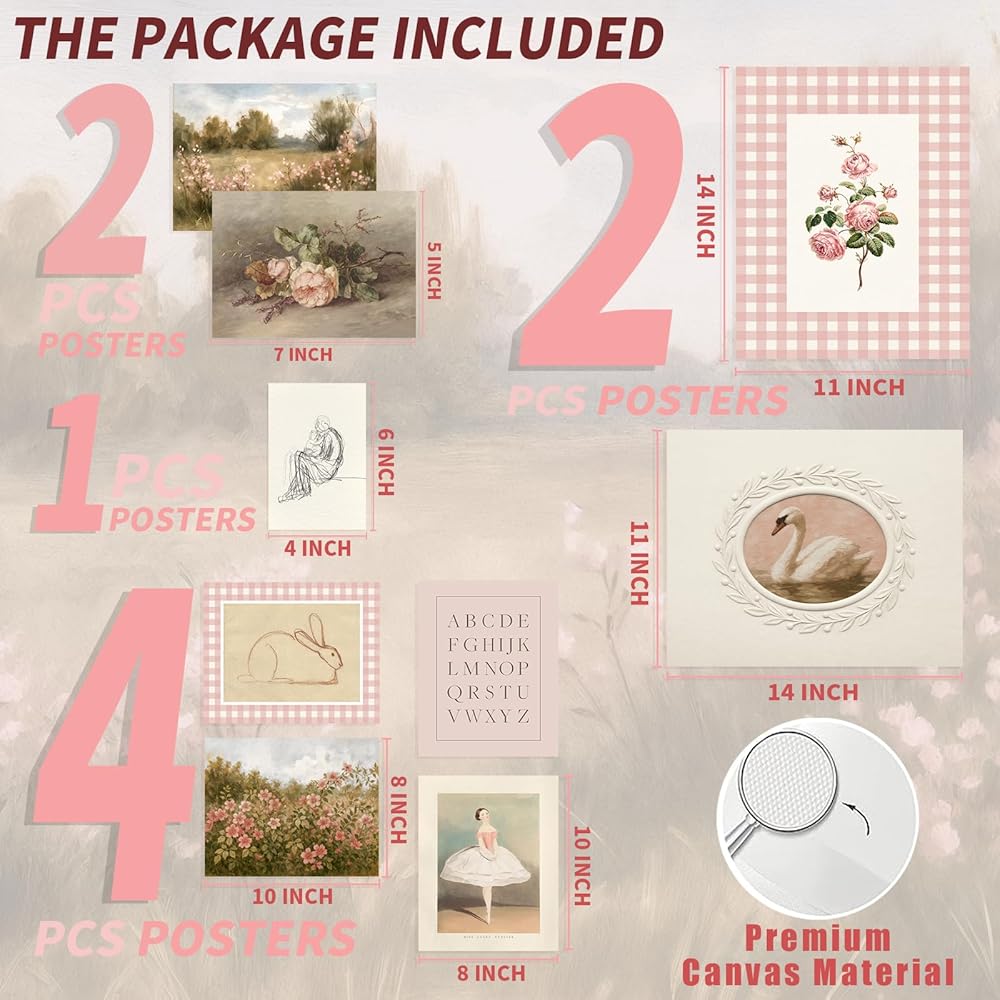 Vintage Wall Art Sets: Our 9pcs gallery wall art come in 4 univeral sizes are included: 1 x 4x6" )/ 2 x 5x7" / 4 x 8x10" / 2x 11X14", making them easy to frame and display on your walls as soon as they arrive. You can choose the size you want to decorate your room and create a warm atmosphere for your room.