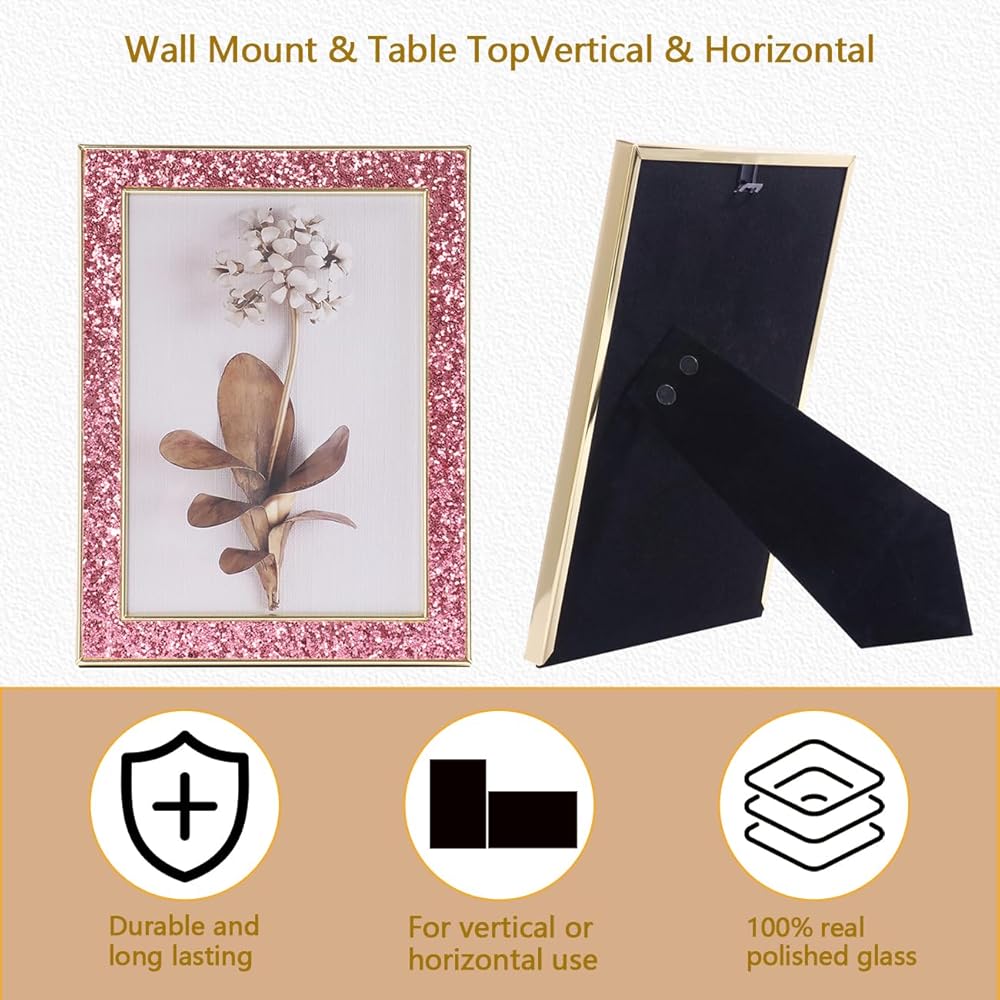 -All frames come with glass fronts to protect your photos.Sparkle glass frames can protect your pictures from dust, moisture, tearing and more. It's also easy to essemble and clean.