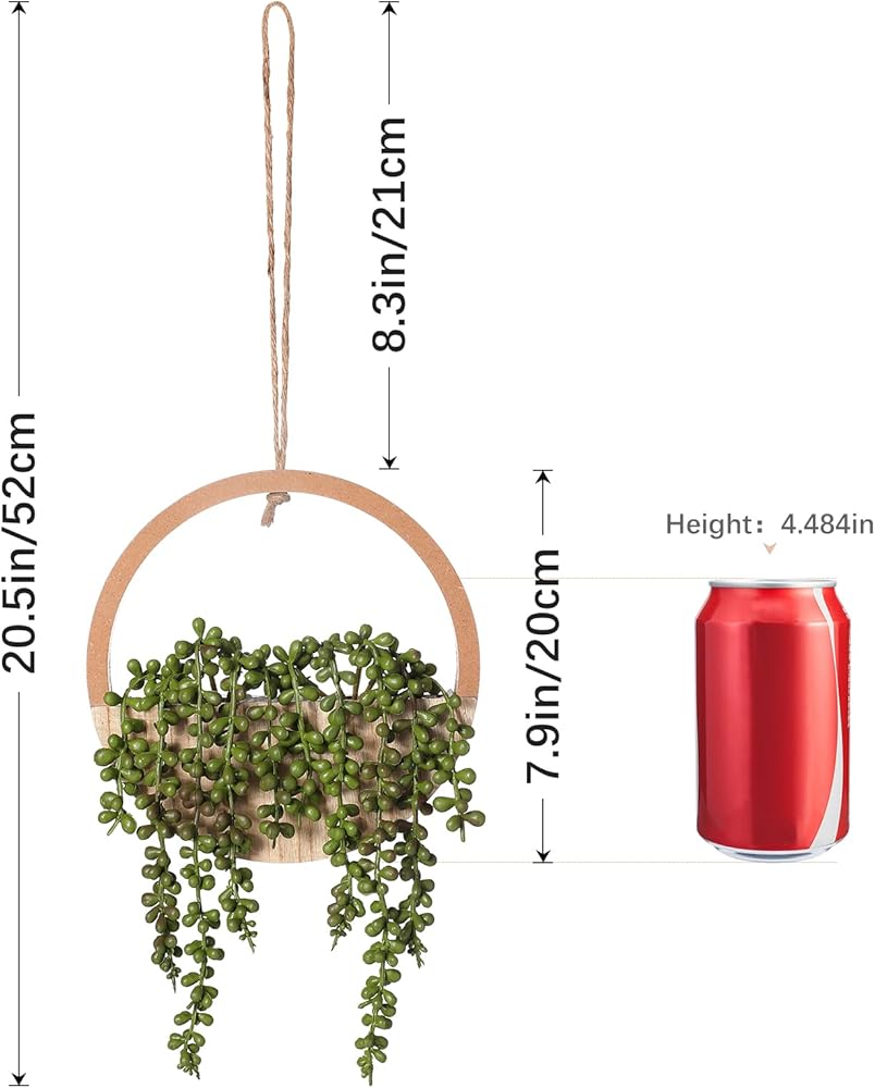 الحجم والتعبئة: وعاء التعليق على الحائط مصنوع من الخشب الصلب، وهو سميك وقوي، وليس من السهل أن يتشقق. كل سلسلة من نباتات اللؤلؤ الصناعية تأتي مع عقدة حبل قوية، لذلك لا داعي للقلق بشأن سقوط نباتك المزيف فجأة. يبلغ الطول الإجمالي لمصنع التعليق المزيف حوالي 12.2 سم مع خيط إضافي بطول 8.3 سم لتعليقه. تحتوي كل عبوة على 2 نبات معلق عصاري مزيف