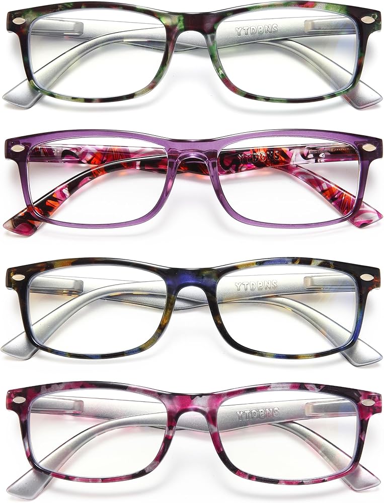 نظارات القراءة باللون الأزرق الفاتح للنساء - هدية رائعة مع خدمات رائعة: 4 أزواج من القراء، هدية عملية للأصدقاء والعائلة