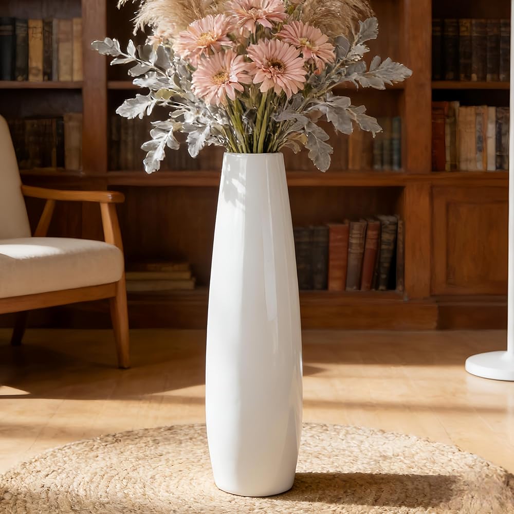 مادة سيراميك عالية الجودة: مصنوعة من السيراميك الفاخر، متينة ومقاومة للتشقق للعرض طويل الأمد. ستحافظ هذه المزهرية البيضاء الكبيرة الأنيقة على ديكور منزلك بمظهر جديد وحديث سنة بعد سنة