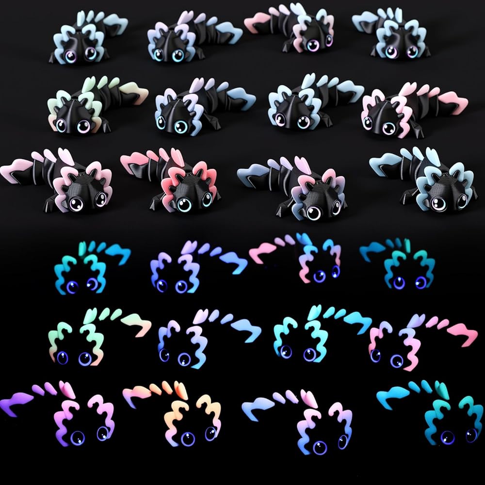 Our 3D printed axolotl figures are made of rainbow filaments and are not guaranteed to be the exact same colors as shown in the photos. Each axolotl figure may have a different gradient color.