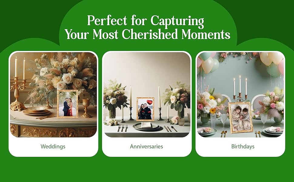 هيكل متين بواجهة زجاجية - مصمم لمتانة طويلة الأمد، يتضمن إطار الصورة الذهبي مقاس 5x7 حشوة زجاجية متينة لحماية الصور من الغبار وبصمات الأصابع وتغير اللون. تضمن اللمسة النهائية عالية الجودة بقاء لونها الذهبي الفاخر نابضًا بالحياة مع مرور الوقت.