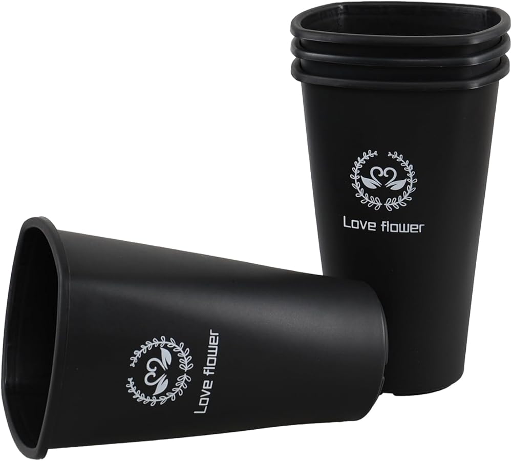 4 Pack Black Plastic Flower Buckets