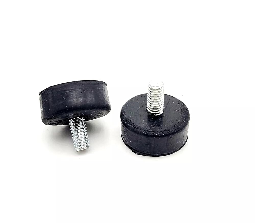 These 25 mm (1") round screw-in rubber feet use an M6 × 1.0 mm zinc-plated steel stud for secure mounting and dependable vibration control. Made from SBR rubber, they provide firm support and effective damping for light- to medium-duty equipment. Each foot measures 25 mm (1") in diameter, 11 mm (7/16") thick, and includes a 12 mm (½") long M6 stud. The zinc-plated threads offer reliable rust and moisture resistance for indoor or light outdoor use. Commonly used as equipment feet, table or chair levelers, anti-vibration mounts, or non-skid bumpers, these versatile parts help stabilize machinery, cabinets, and furniture on wood, tile, or concrete surfaces. Available in 4, 8, and 12 packs, they install easily—just screw them into a pre-threaded insert or bracket to create a cushioned, durable base that reduces noise and protects surfaces.