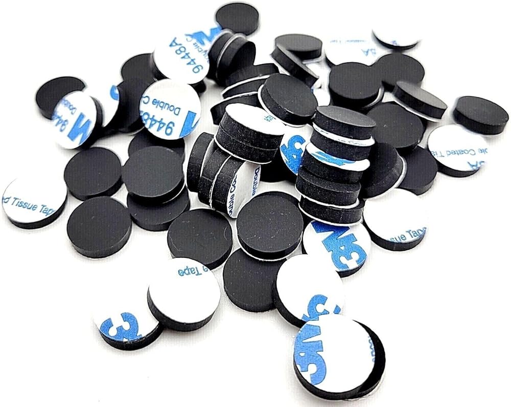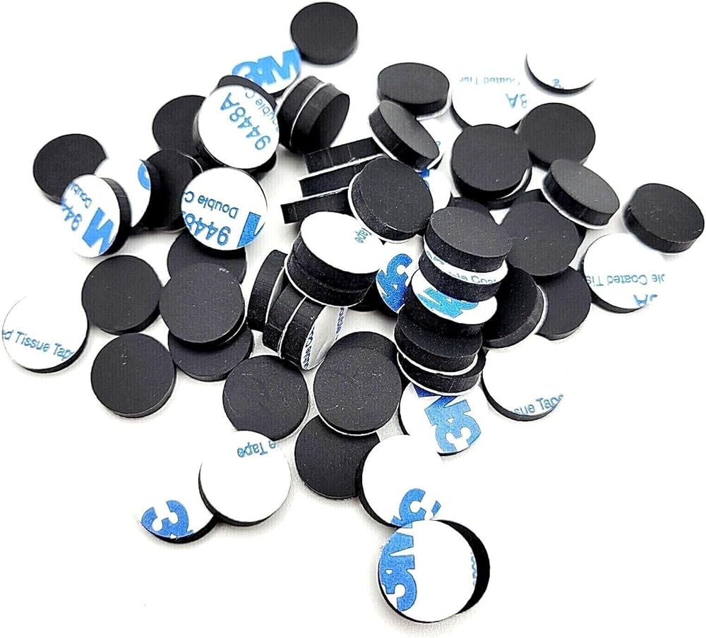 1/2" Round Rubber Stick-On Feet Pads - Peel & Stick Adhesive Lifters/Bumpers - Available in Packs of 12, 24, 48, 100 Product Description: Enhance the stability and protection of your equipment with our 1/2" Wide Round Rubber Stick-On Feet Pads These 1/8" thick lifters/bumpers are equipped with a high- adhesive backing for easy application Choose from various pack options to suit your needs, including 12, 24, 48, or 100 packs Key Features: Peel and Stick Convenience: Quick and secure application with reliable adhesive backing Multi-Purpose Use: Ideal for electronics, including DVD players, gaming consoles (Xbox and PlayStation), and more Perfect for elevating items in kitchens, restrooms, and workspaces to protect against dust and water damage Replacement Solution: Excellent for replacing worn or missing feet on guitar pedals, audio equipment, home d?cor, cutting boards, and door bumpers" Ideal for applications where cable protection or spacing is essential Easy installation with a press-fit design Pack options available for flexibility Designed for use in automotive, home, or industrial setups