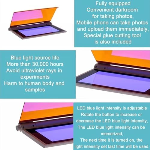 Foldable Imaging Shield: The integrated darkroom unit allows for instant photo taking and result recording using a smartphone, tablet, or camera. Equipped with a dedicated gel cutting tool for easy.