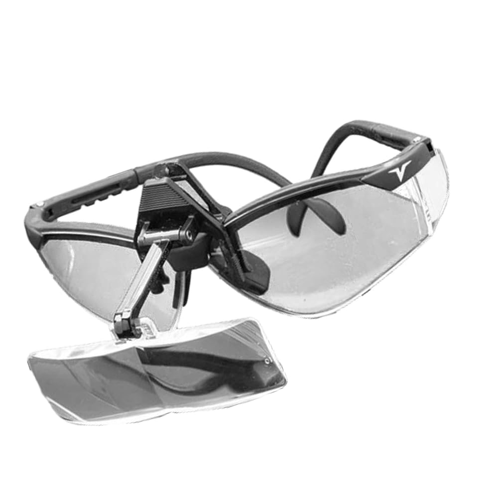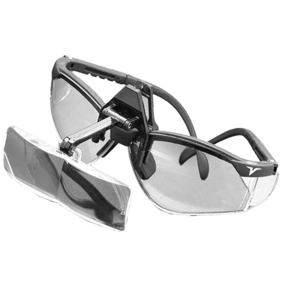 - Allows for hands-free magnification without replacing existing eyewear, helping maintain normal field positioning