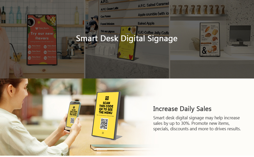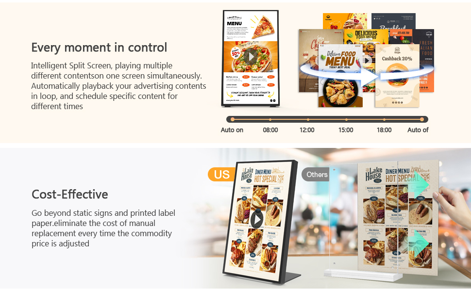 【تطبيق واسع】تطورت اللافتات الرقمية من لوحات قوائم بسيطة أو محطات دفع إلى أدوات اتصال أساسية للعلامة التجارية لمتاجر البيع بالتجزئة. ومن خلال مقاطع الفيديو الديناميكية والرسومات الجذابة بصريًا والمعلومات في الوقت الفعلي، فإنه ينقل بوضوح قيمة المنتج ويشكل صورة العلامة التجارية في نقطة البيع.