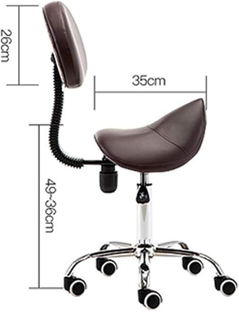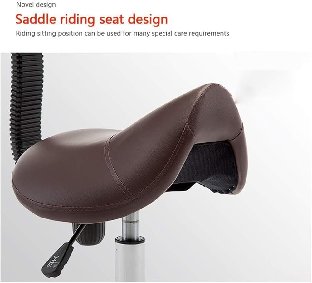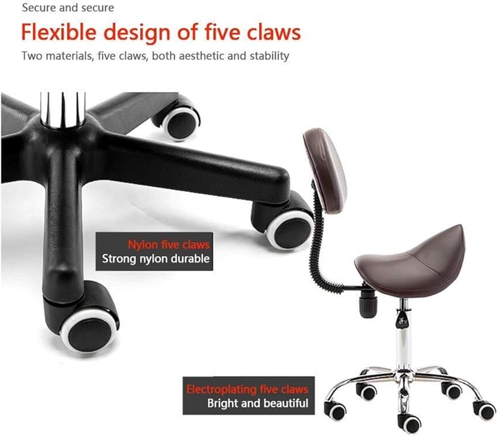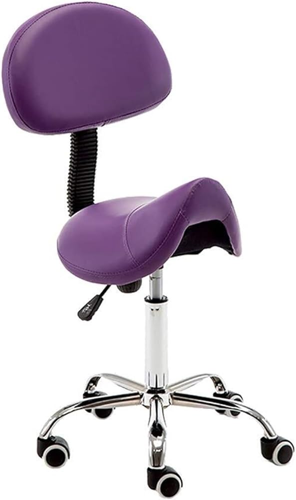 Heavy Duty Stainless Steel Massage Stool:Introducing our ergonomic Saddle Stool with Backrest, designed to enhance your seating experience while promoting proper posture. This innovative seating solution helps maintain a straight and upright position, which can significantly reduce neck and back strain, making it perfect for long hours of use in various settings. The stool features a 360-degree rotating bearing and an adjustable seat height ranging from 14.17 to 19.29 inches, easily modified with a hydraulic lift mechanism. Its elegant reinforced nylon wheels ensure smooth and quiet movement across all floor types, without leaving scratches behind. Our five-point design enhances flexibility and comfort, while the high-quality nylon material provides both aesthetic appeal and stability. This versatile dressing stool is ideal for a wide array of environments, including kitchens, restaurants, beauty salons, clinics, laboratories, warehouses, and work centers. Whether you're a beautician, barber, or simply need a comfortable seat at home, this stool meets your needs. The high-density sponge filling guarantees a comfortable seating experience that resists folding and deformation. With a weight capacity of approximately 200 kg, you can trust this stool to provide safe and secure support for all users. Experience the perfect blend of style, comfort, and functionality with our Purple Saddle Stool—your go-to seating choice for any professional or personal space.
