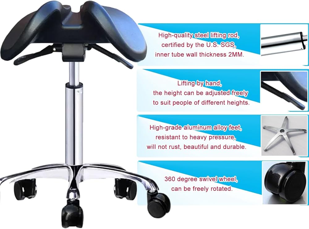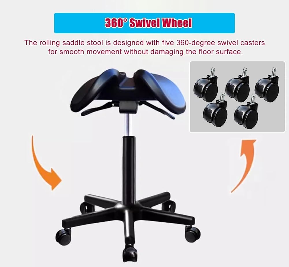 2,Adjustable Hairdressing Seat:Experience Ultimate Comfort with Our Ergonomic Saddle Chair. Designed to Support Your Posture, It Alleviates Pressure on Your Back and Lumbar Discs. Ideal for Long Hours of Sitting, This Chair Helps Reduce Discomfort and Enhance Productivity. Perfect for Home Offices, Workspaces, and More, Elevate Your Sitting Experience Today!