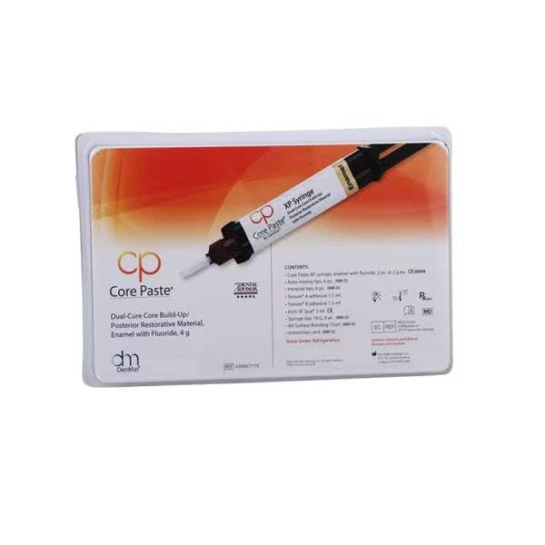 The proven time saver for core build-ups and posterior restorations. For over 30 years, Core Paste has helped thousands of dentists perform reliable core build-ups with complete confidence. This kit includes 1-5g syringe of Core Paste XP w/ Fluoride, Enamel Shade, 1-3mL syringe of Etch 'N' Seal and 1.5ml bottle of each Tenure A & B. Kit also includes necessary mixing and syringe tips for products listed.