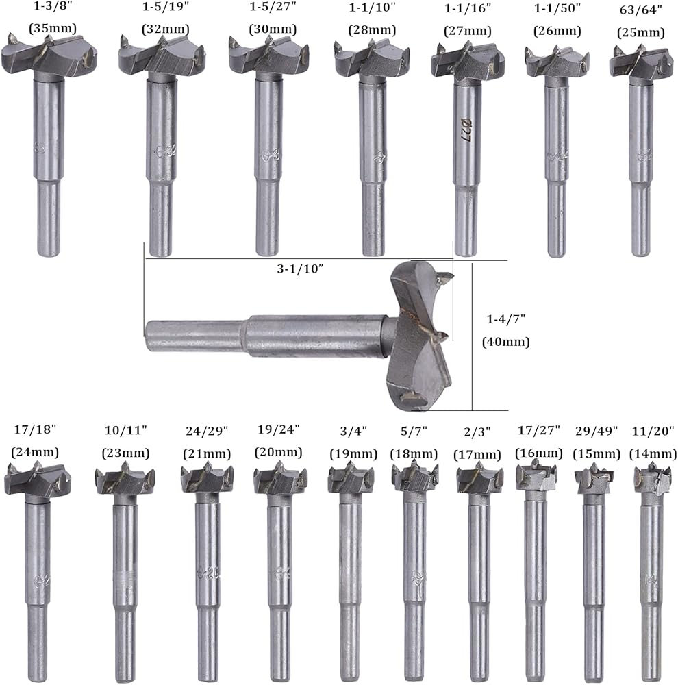 • العبوة تشتمل على: إجمالي 18 قطعة من مجموعات رؤوس المثقاب فورستنر، كل لقم ثقب معبأة في صندوق بلاستيكي واحد: 11/20 بوصة (14 مم)، 29/49 بوصة (15 مم)، 17/27 بوصة (16 مم)، 2/3 بوصة (17 مم)، 5/7 بوصة (18 مم)، 3/4 بوصة (19 مم)، 19/24 بوصة (20 مم)، 24/29 بوصة (18 مم)، 3/4 بوصة 211مممممممممم/11 انش (23 ملم)، 17/18 انش (24 ملم)، 63/64 انش (25 ملم)، 1-1/50 انش (26 ملم)، 1-1/16 انش (27 ملم)، 1-1/10 انش (28 ملم)، 1-5/27 انش (30 ملم)، 1-5/19 انش (32 ملم)، 1-3/8 انش (35 ملم)، 1-3/8 انش (35 ملم)، 1-5/1-4/7" -4/(40 ملم). الطول الإجمالي: 3-1/10 بوصة.