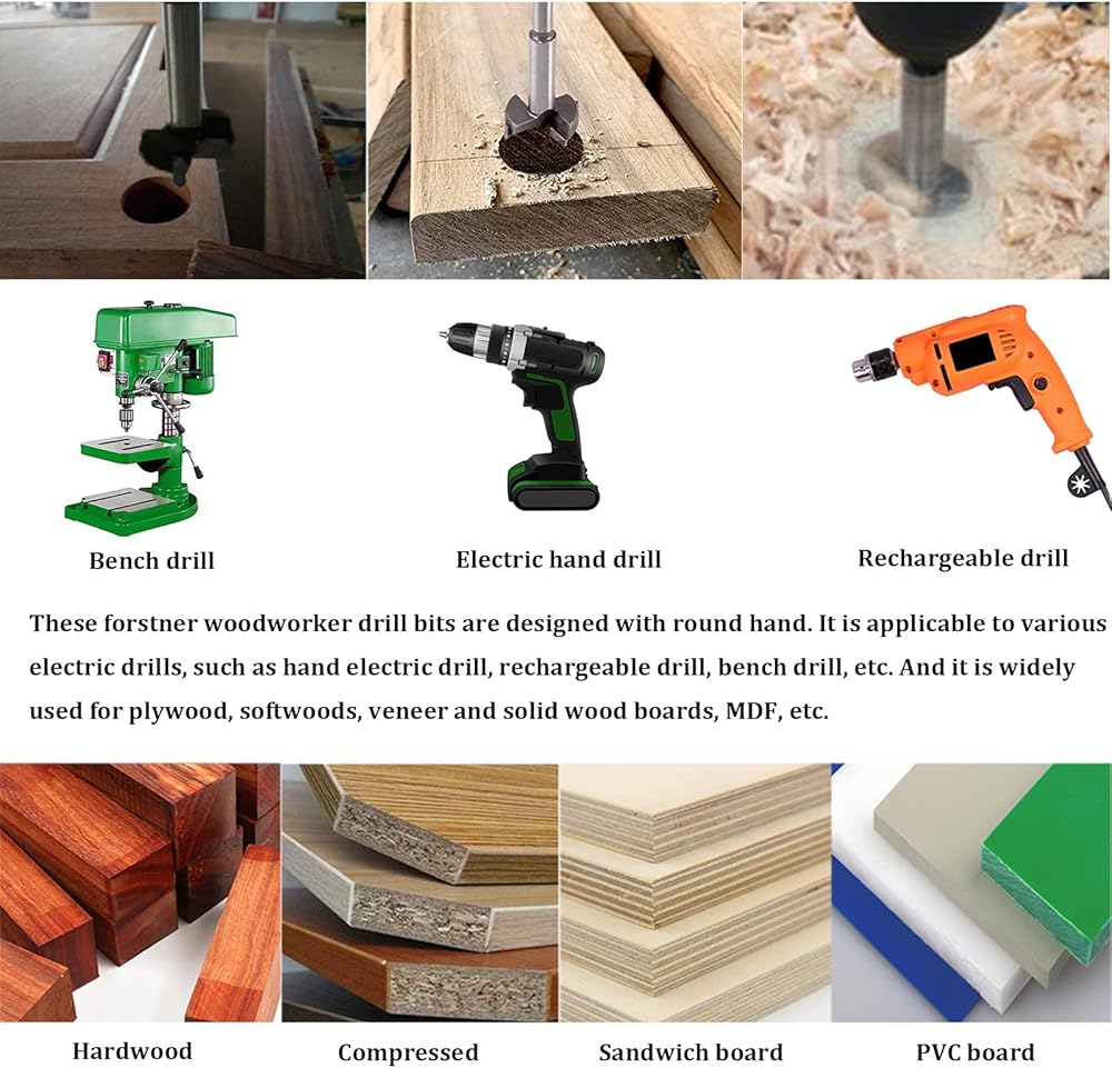 • مناسبات الاستخدام على نطاق واسع: تم تصميم رؤوس مثقاب فورستنر هذه بيد مستديرة. يمكن استخدامه مع مختلف المثاقب الكهربائية، مثل المثقاب الكهربائي اليدوي، المثقاب القابل لإعادة الشحن، المثقاب المنضدي، إلخ. ويستخدم على نطاق واسع للخشب الرقائقي والخشب اللين والقشرة والألواح الخشبية الصلبة والخشب المضغوط والخشب المضغوط وما إلى ذلك.