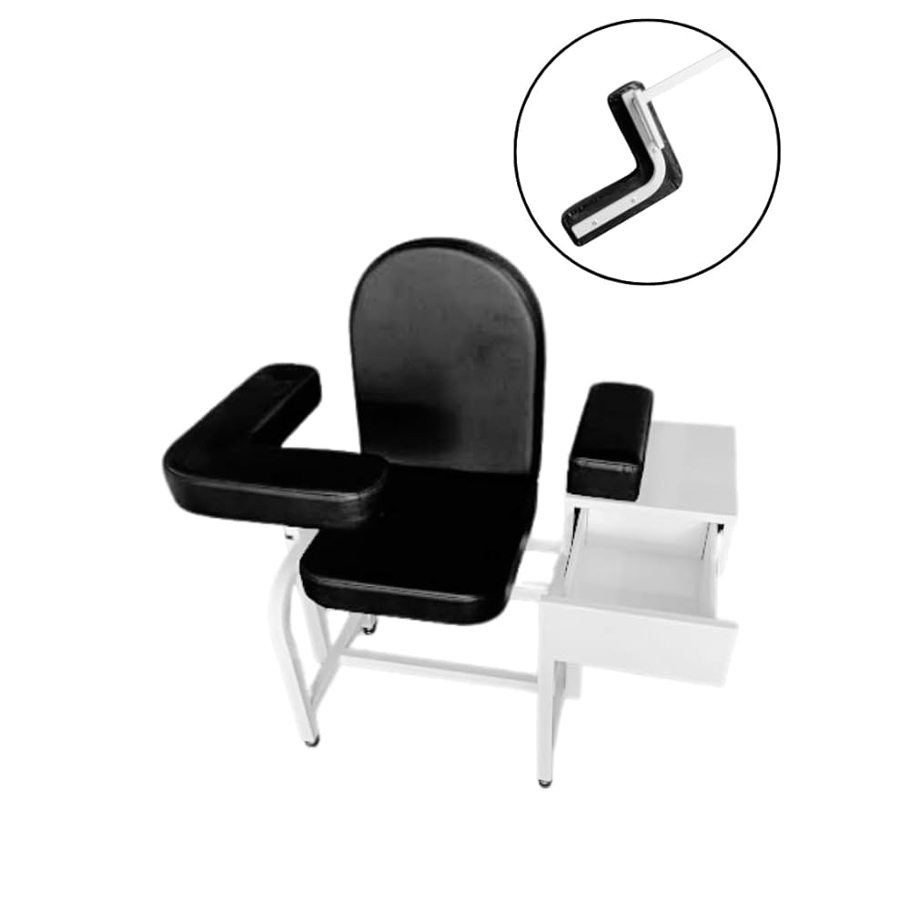 كرسي سحب الدم من كلينسام مع مسند ذراع قابل للتعديل، كرسي سحب الدم الصلب قطعة واحدة، مقعد مبطن مريح، درج تخزين مدمج - مثالي للمختبرات الطبية والعيادات والاستخدام الاحترافي