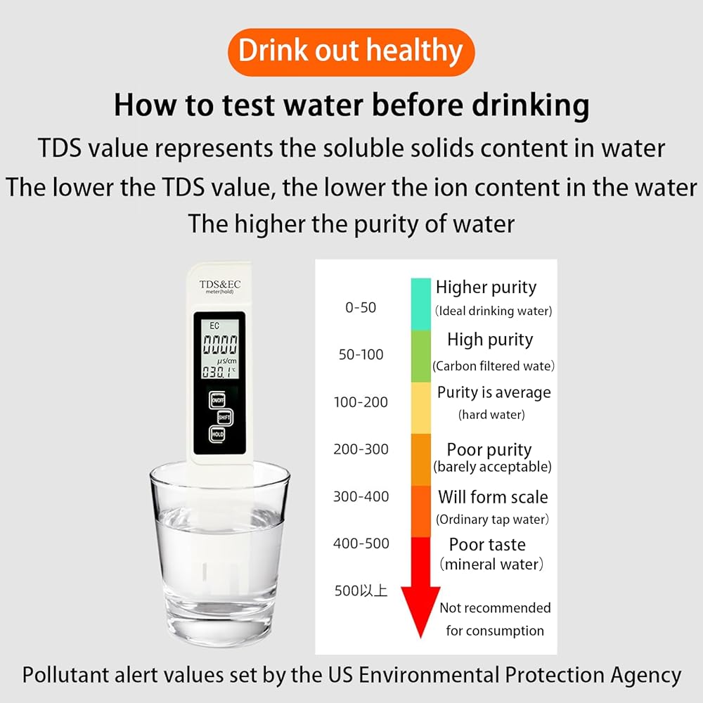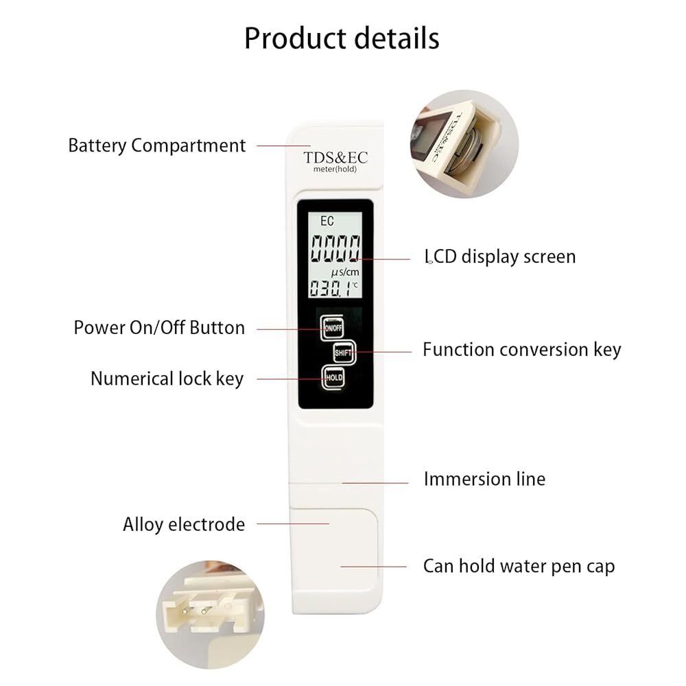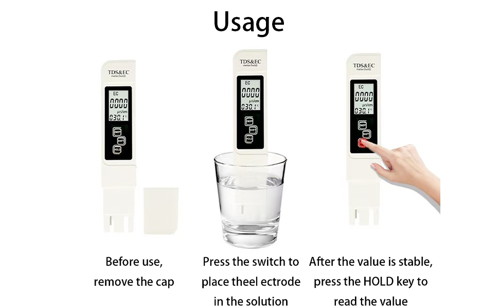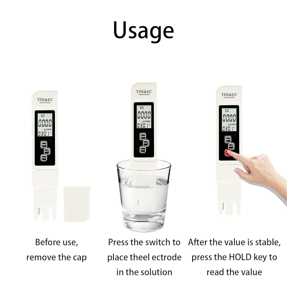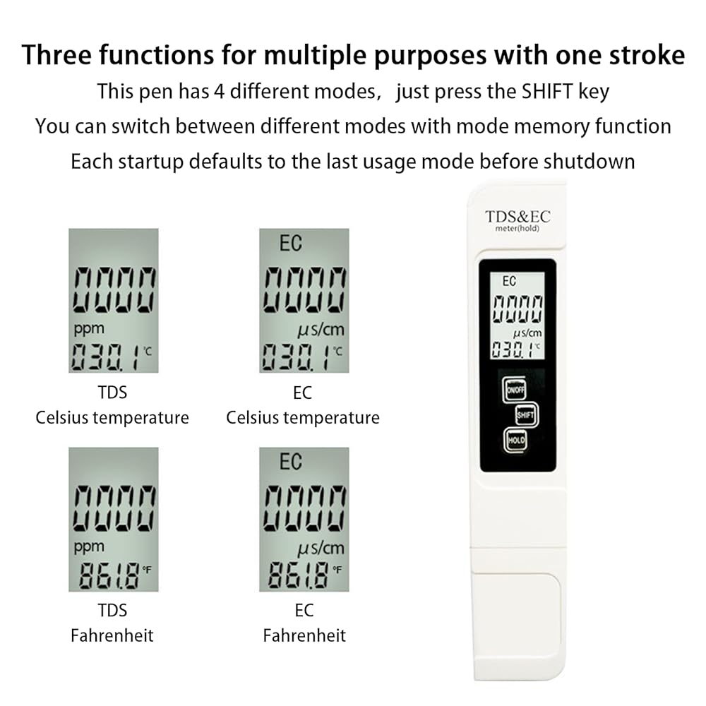 سهل الاستخدام: يدمج هذا الجهاز قياسات TDS وEC ودرجة الحرارة (℉ وC) في مجموعة واحدة شاملة وبأسعار معقولة لاختبار المياه. بالإضافة إلى ذلك، لتعزيز إمكانية الوصول البصري، قمنا بتكبير الشاشة بنسبة 25%