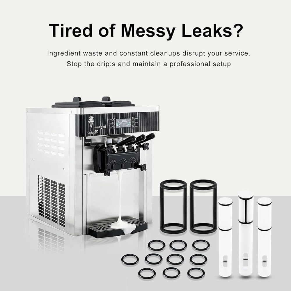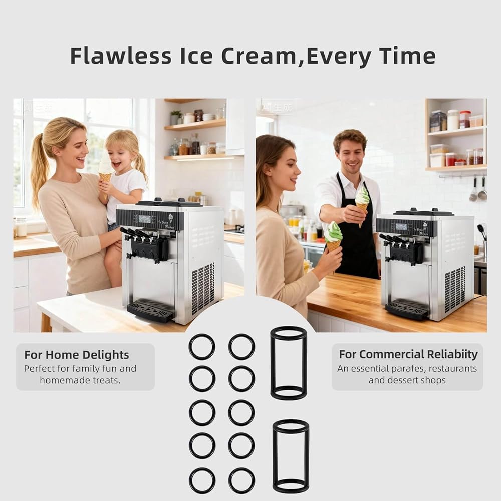 منع احترافي للتسرب - تعمل التصميمات المصممة بدقة على شكل حرف H وO على إنشاء أختام محكمة تمنع تسرب المكونات، وتحافظ على نسيج الآيس كريم المتسق، وتحمي مكونات الماكينة الداخلية من التلف.