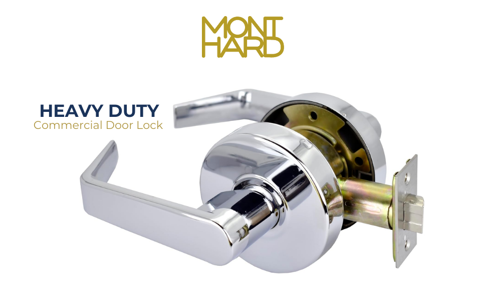 وظيفة مرور قفل الباب التجاري من MONT HARD - رافعة أسطوانية من الدرجة 2 مصنوعة من الكروم المصقول - غير يدوية، مقاومة للحريق لمدة 3 ساعات من UL، مقبض قابل للعكس للأبواب من 1-3/8 بوصة إلى 1-3/4 بوصة