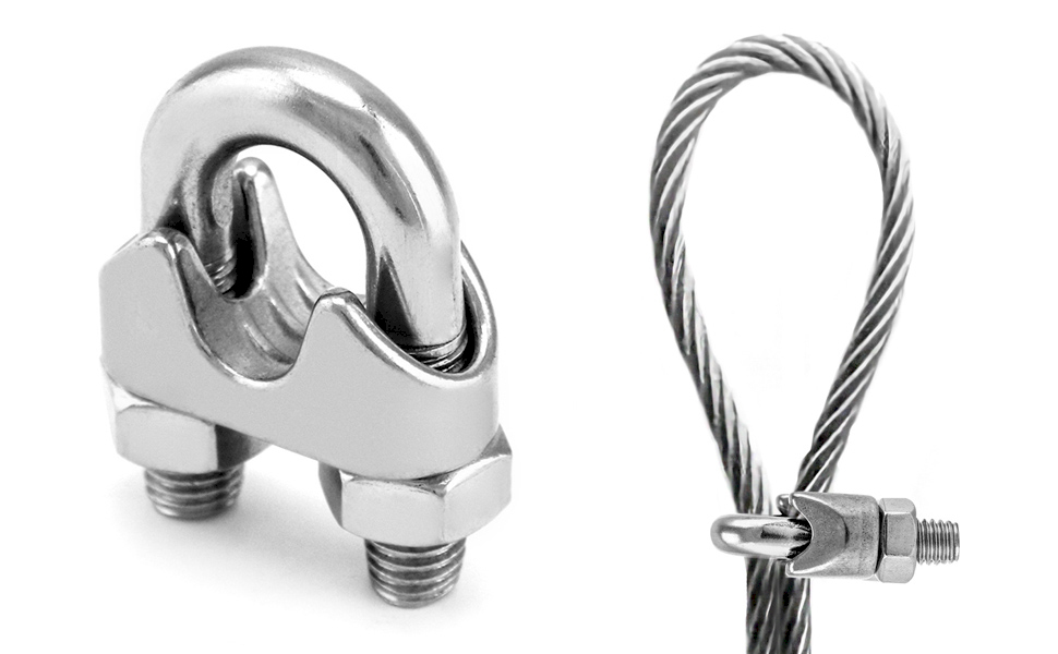 QWORK 1/2 "سلك حبل المشبك كليب M12، 50 حزمة كبيرة U بولت السرج الرجل السحابة، 304 الفولاذ المقاوم للصدأ قفل كابل المشابك، توصيل طبقتين من الأسلاك لتشكيل حلقة