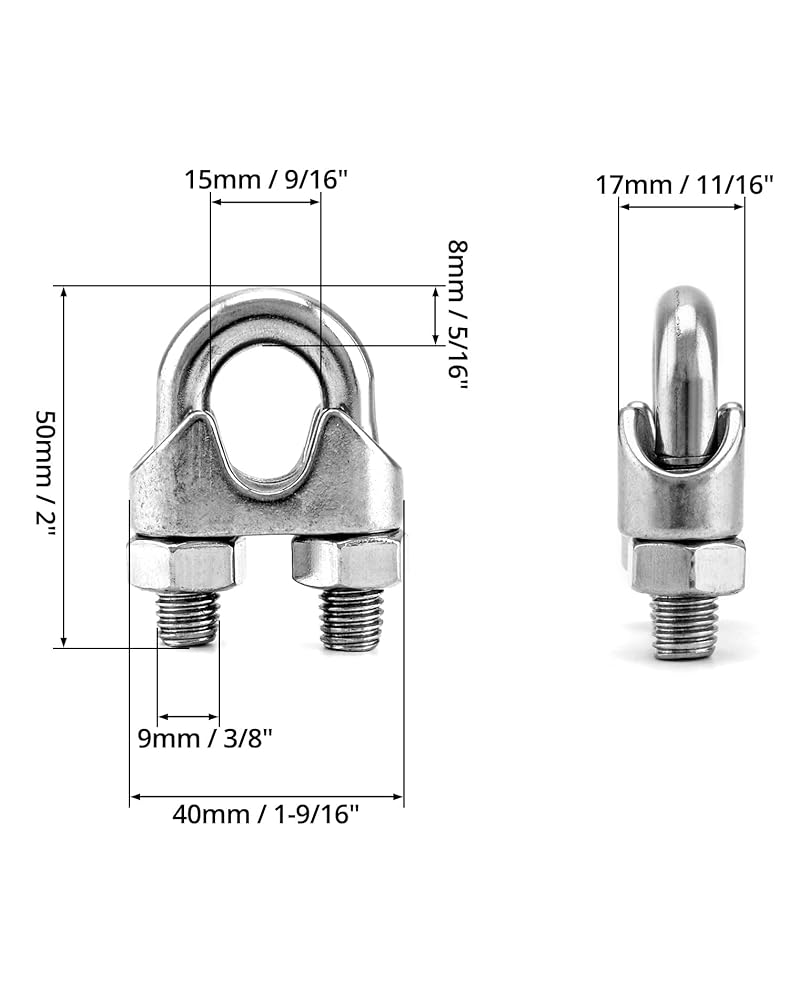 • تتضمن الحزمة: 50 قطعة مشابك حبل M12. يمكن استخدامه لقطر السلك 1/2 بوصة.