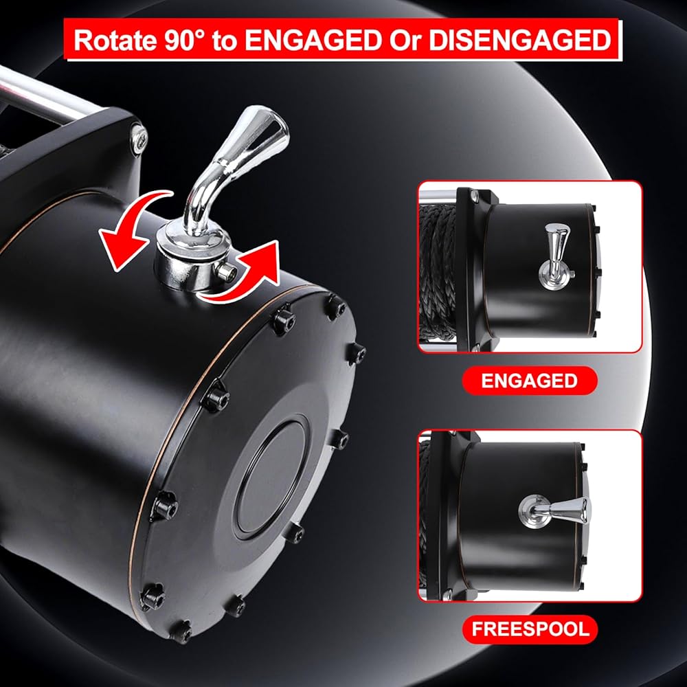 فرامل تحمل الحمولة بنسبة 100% + قابض بزاوية 90 درجة: تعمل الفرامل الأوتوماتيكية المدمجة الآمنة على قفل الأسطوانة على الفور - دون انزلاق الحمل، حتى على المنحدرات الشديدة. مفتاح القابض 90 درجة لـ "وضع Freespool" - قم بتحرير/ضبط الحبل يدويًا بسرعة. مثالية لعمليات السحب/الإنقاذ الدقيقة - لا توجد مخاطر "للحمل الجامح".