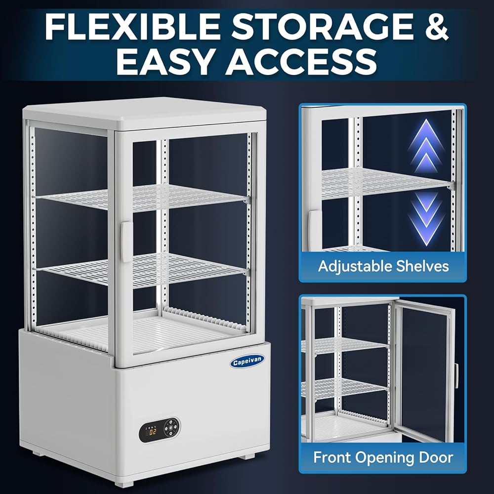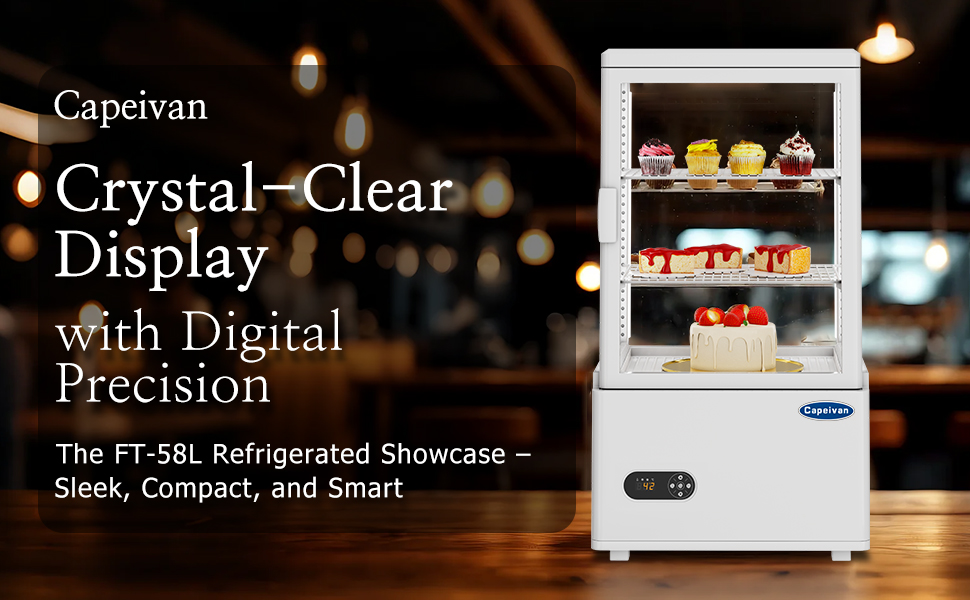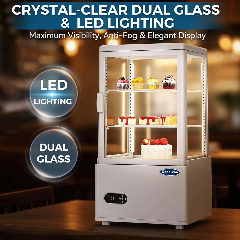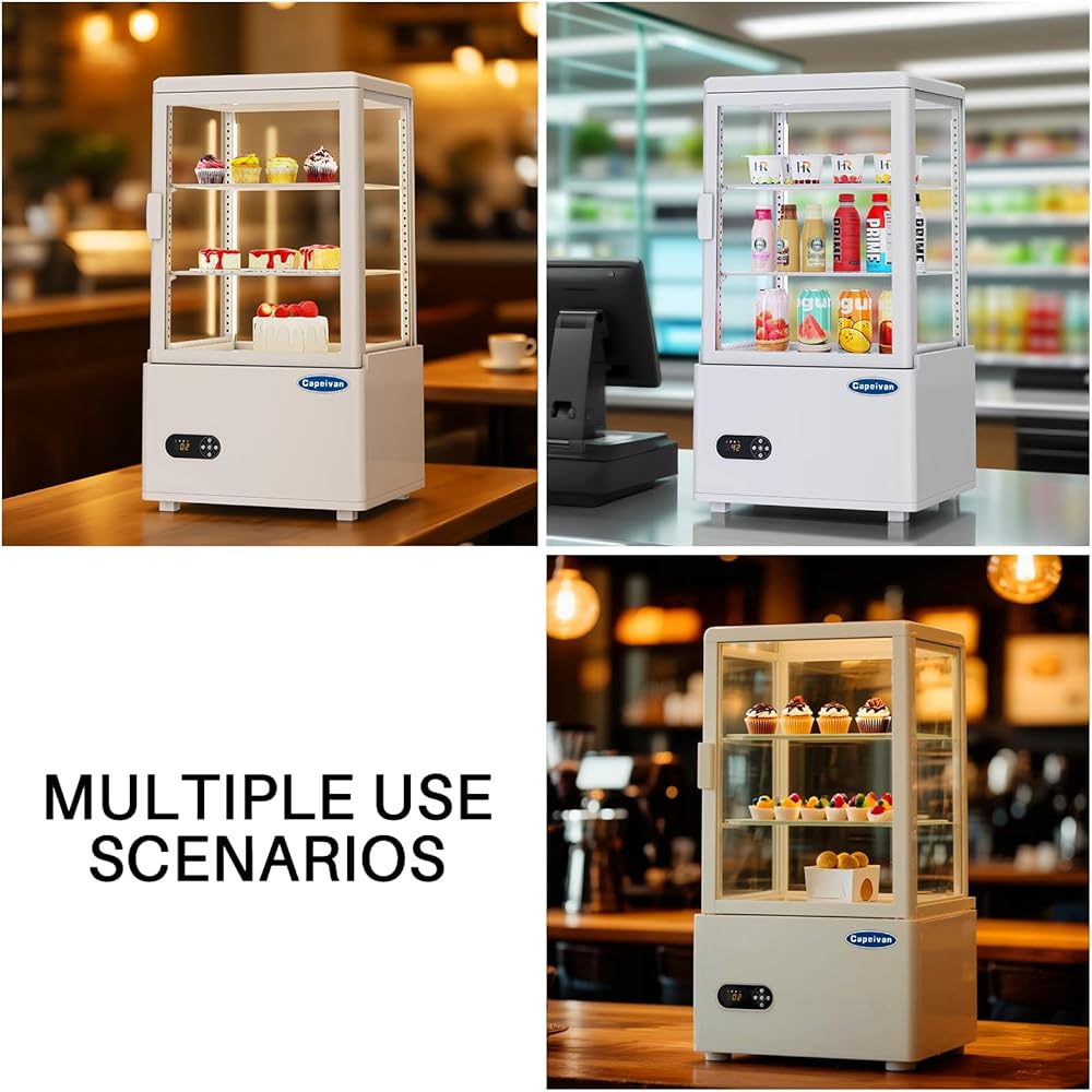 【حجم صغير جاهز تجاريًا - ثلاجة عرض كونترتوب مثالية】 تتميز ثلاجة عرض كونترتوب التجارية هذه التي تبلغ مساحتها 2.05 قدم مكعب / 58 لترًا بمساحة 17.8 بوصة × 16 بوصة × 32.2 بوصة، مما يجعلها مثالية لطاولات المخابز والمقاهي والمتاجر الصغيرة. تعرض الكعك والمشروبات المعبأة في زجاجات والحلويات المبردة بجاذبية احترافية.