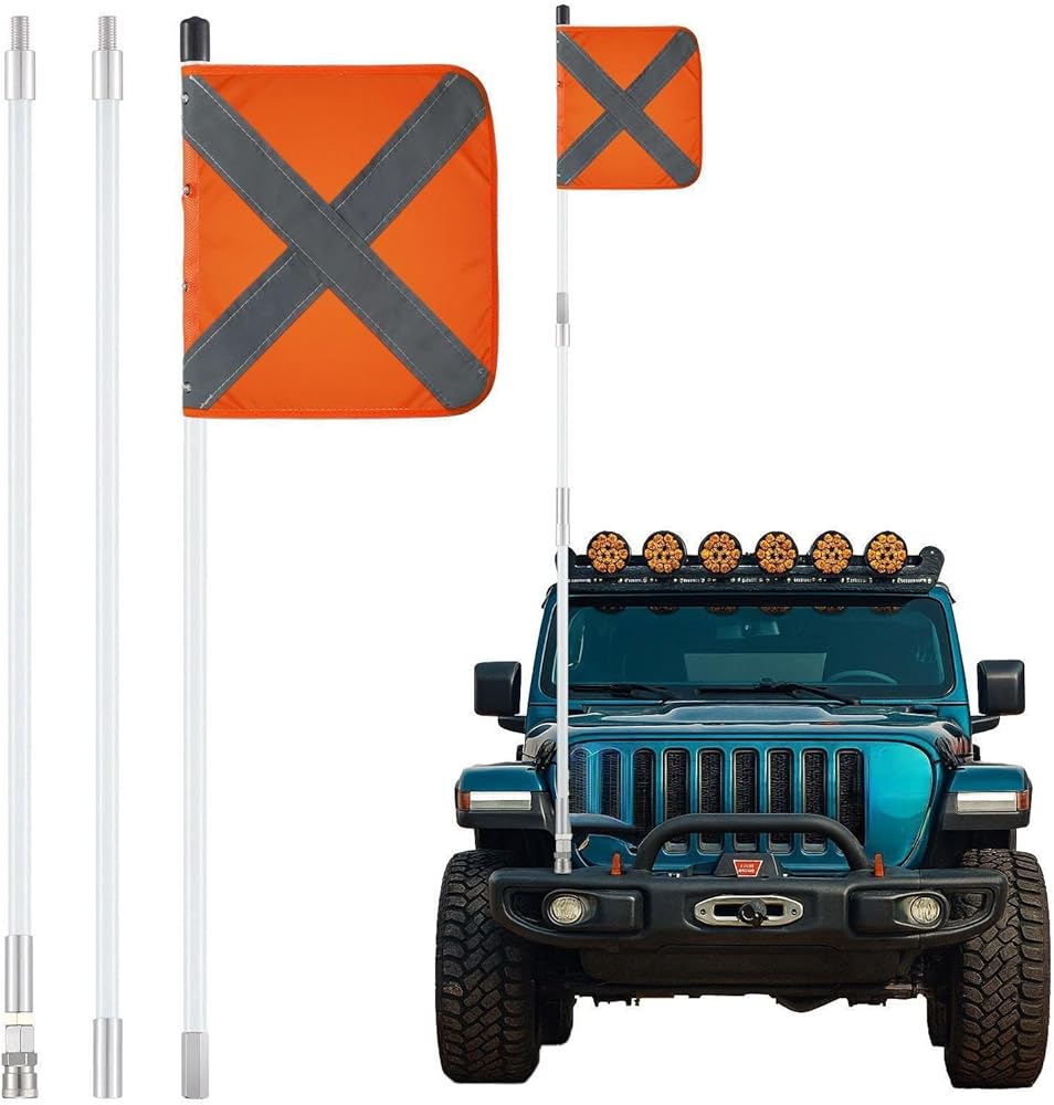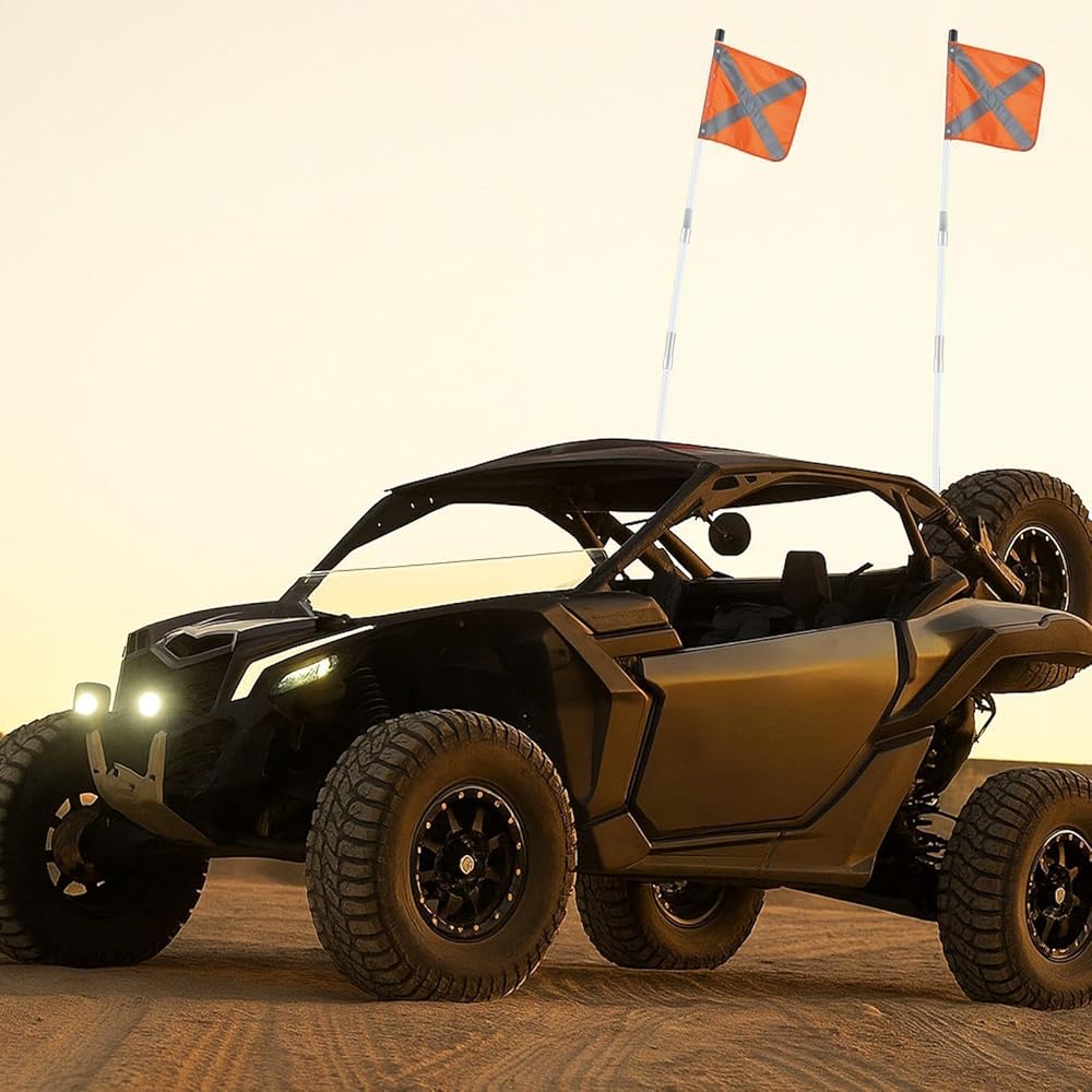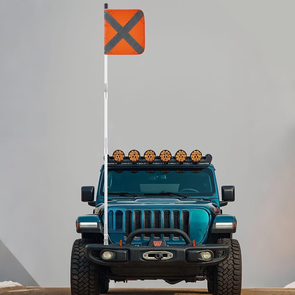 Our safety flags feature a highly visible 10 foot tall design with a large 11.8 x 11.8 inches/ 300 x 300 mm PVC flag and reflective cross strips, significantly reducing the risk of collisions with oncoming vehicles in off-road environments such as beaches, trails, and worksites. Ideal for trucks, ATV, UTV, and boats.