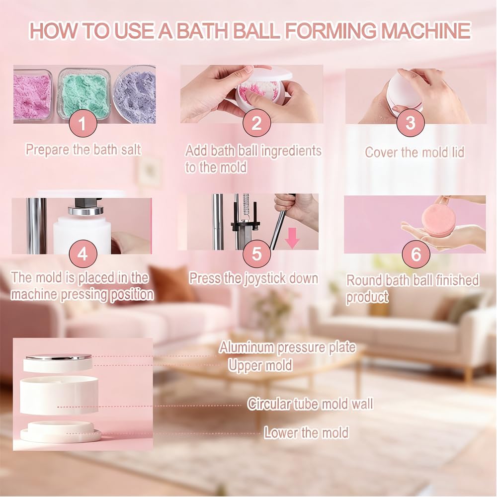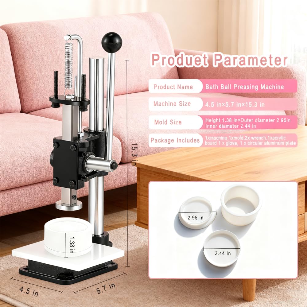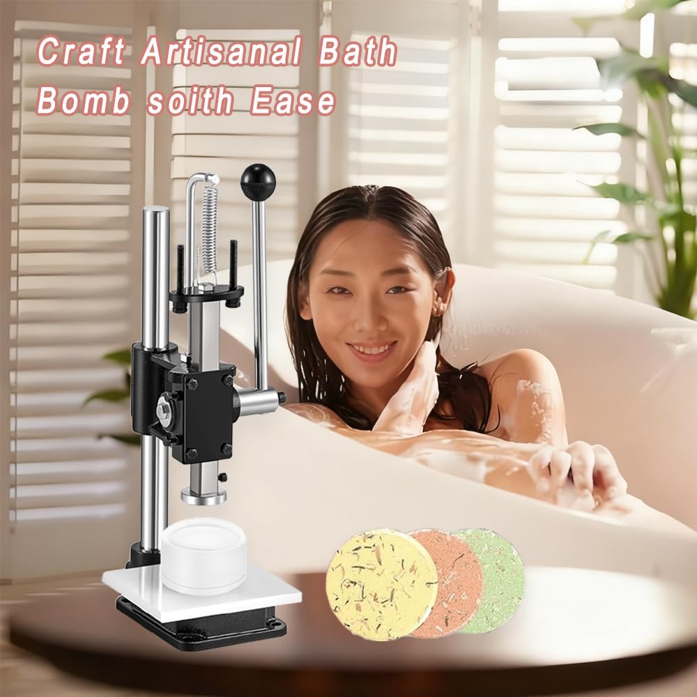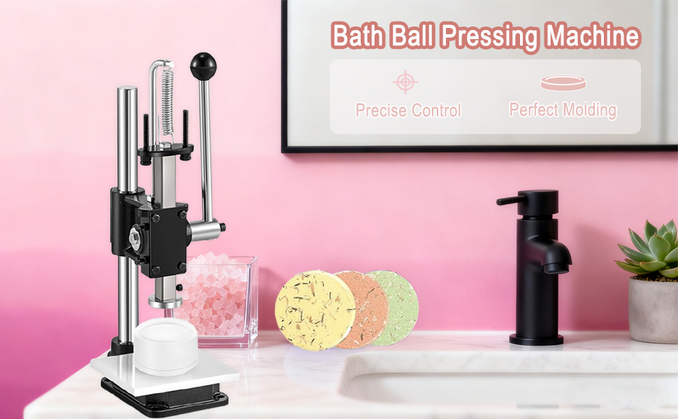آلة ضغط كرات الاستحمام مع قالب صابون شامبو دائري: تم تصميم آلة ضغط كرات الاستحمام هذه من أجل السرعة والكفاءة والنتائج المتسقة - مثالية للهواة والصانعين على نطاق صغير.