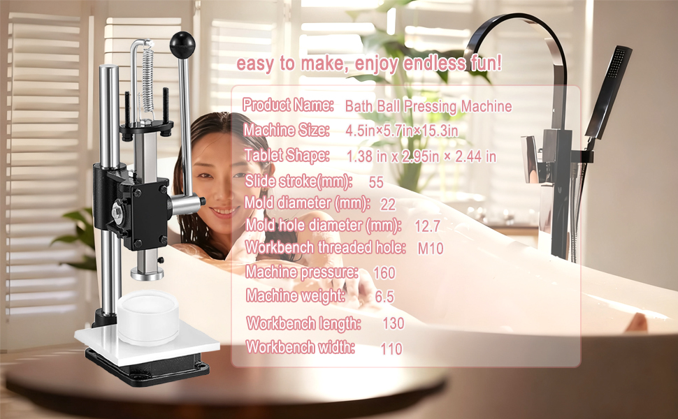يدعم الصيغ والأنماط الإبداعية: قم بتجربة الروائح والألوان والطبقات والأنسجة المخصصة. تتيح لك آلة الضغط على كرات الاستحمام ذات قالب الشامبو إنشاء أي شيء بدءًا من قنابل اللافندر المهدئة وحتى مزيج الحمضيات الغازية - للأطفال أو البالغين أو أي شخص يحب لحظة السبا.