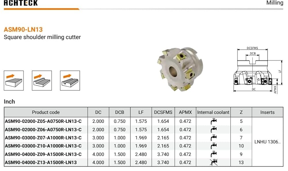 ASM90-04000-Z09-A1500R-LN13-C 4.00 بوصة ضياء. قاطعة الطحن، رصاص 90 درجة. 9 أسنان مع 4 حواف قطع