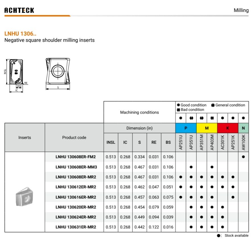 4.00 Inch Dia. Milling Cutter, 90° Lead. 9 Teeth with 4 cutting Edges